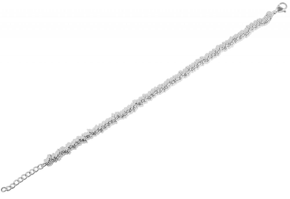 A pulseira de joias da marca Akzent é feita de aço inoxidável prateado e mede um comprimento total de 20 cm incluindo uma corrente de extensão de 3 cm de comprimento. A pulseira consiste em vários ilhós redondos de aço inoxidável amarrados entre si e com um diâmetro de 5 mm. Pode ser aberto e fechado com um mosquetão. Uma característica especial desta elegante joia é a superfície prateada radiantemente brilhante, que foi criada com revestimento de prata de alta qualidade. Isso torna a pulseira um atrativo especial.
