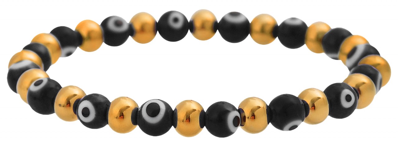 A pulseira da marca Apfel é feita de 16 bolas de aço inoxidável e 16 bolas de plástico uniformemente espaçadas. As bolas de plástico são decoradas com o olho de Nazar, por isso esta pulseira de joalheria não é apenas uma companheira da moda, mas também um talismã que oferece proteção ao usuário todos os dias. As bolas são montadas em um elástico de borracha de náilon. Isso significa que a joia pode ser facilmente puxada pelo pulso. As dimensões da pulseira resultam de um diâmetro interno de aprox. 5 cm quando relaxada e uma espessura de 0,6 cm. A pulseira também é perfeita como presente, por exemplo, para um aniversário, Dia dos Namorados ou Natal.
