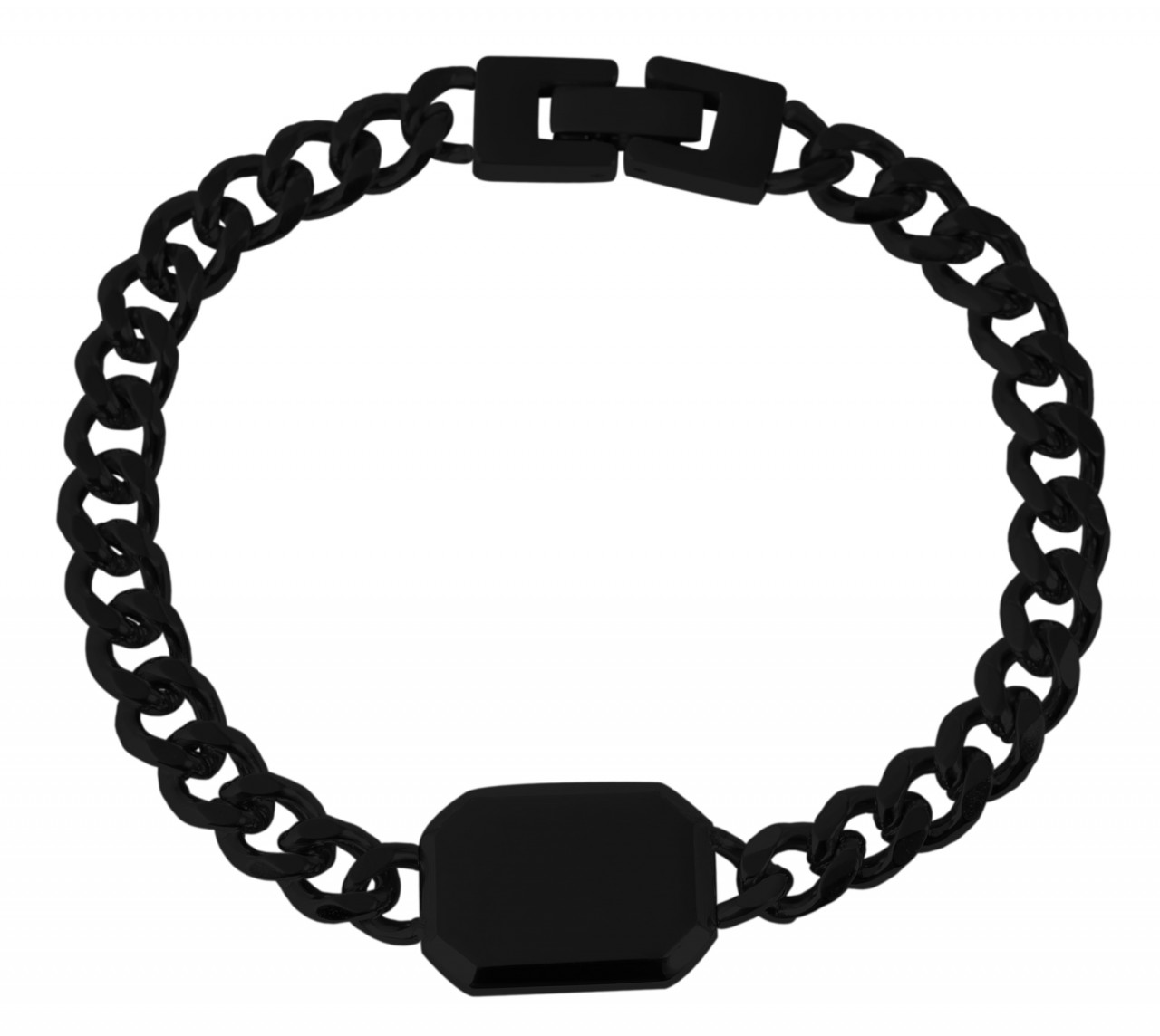 A pulseira gravada da marca Praktik é feita de aço inoxidável em padrão blindado e está disponível em diversas cores. A pulseira pode ser aberta e fechada com um fecho de gancho, também feito de aço inoxidável. A pulseira do meio-fio tem comprimento de 19,5 cm, largura de 7 mm e espessura da corrente de 3 mm. Graças a um elemento de extensão incluído na entrega, o comprimento pode ser aumentado em mais 1 cm. No meio da pulseira há uma placa de gravação octogonal integrada. Possui acabamento fosco e polido, tem comprimento de 20 mm e largura de 15 mm e pode ser fornecido com diversos tipos de gravuras. A faixa de identificação pode ser desenhada individual e pessoalmente, tornando-a um presente inesquecível.