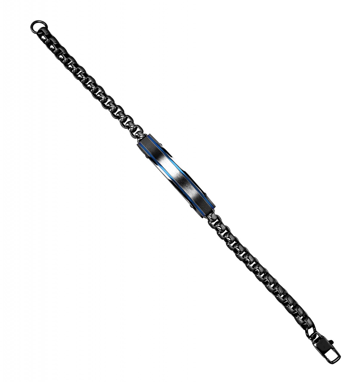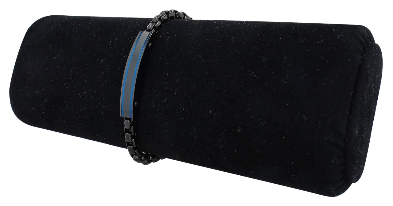 A pulseira Akzent Venezia Marlowe é feita de aço inoxidável de alta qualidade, um material que não só é durável, mas também hipoalergénico. A pulseira de 20,5 cm de comprimento e 6 mm de espessura combina robustez com elegância sofisticada. O fecho lagosta proporciona um ajuste seguro e uma fixação firme. Escolha entre prata ou preto para todos os gostos. A pulseira apresenta uma placa gravada que não é apenas elegante, mas também pessoal. O acabamento fosco da placa de gravação cria um fundo discreto, enquanto as bordas externas polidas e as listras azuis sutis chamam a atenção. A placa de gravação, com 43 mm de comprimento e 8 mm de largura, oferece espaço para mensagens pessoais, seja um nome, uma data ou uma fonte significativa.