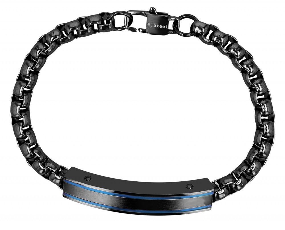 A pulseira Akzent Venezia Marlowe é feita de aço inoxidável de alta qualidade, um material que não só é durável, mas também hipoalergénico. A pulseira de 20,5 cm de comprimento e 6 mm de espessura combina robustez com elegância sofisticada. O fecho lagosta proporciona um ajuste seguro e uma fixação firme. Escolha entre prata ou preto para todos os gostos. A pulseira apresenta uma placa gravada que não é apenas elegante, mas também pessoal. O acabamento fosco da placa de gravação cria um fundo discreto, enquanto as bordas externas polidas e as listras azuis sutis chamam a atenção. A placa de gravação, com 43 mm de comprimento e 8 mm de largura, oferece espaço para mensagens pessoais, seja um nome, uma data ou uma fonte significativa.