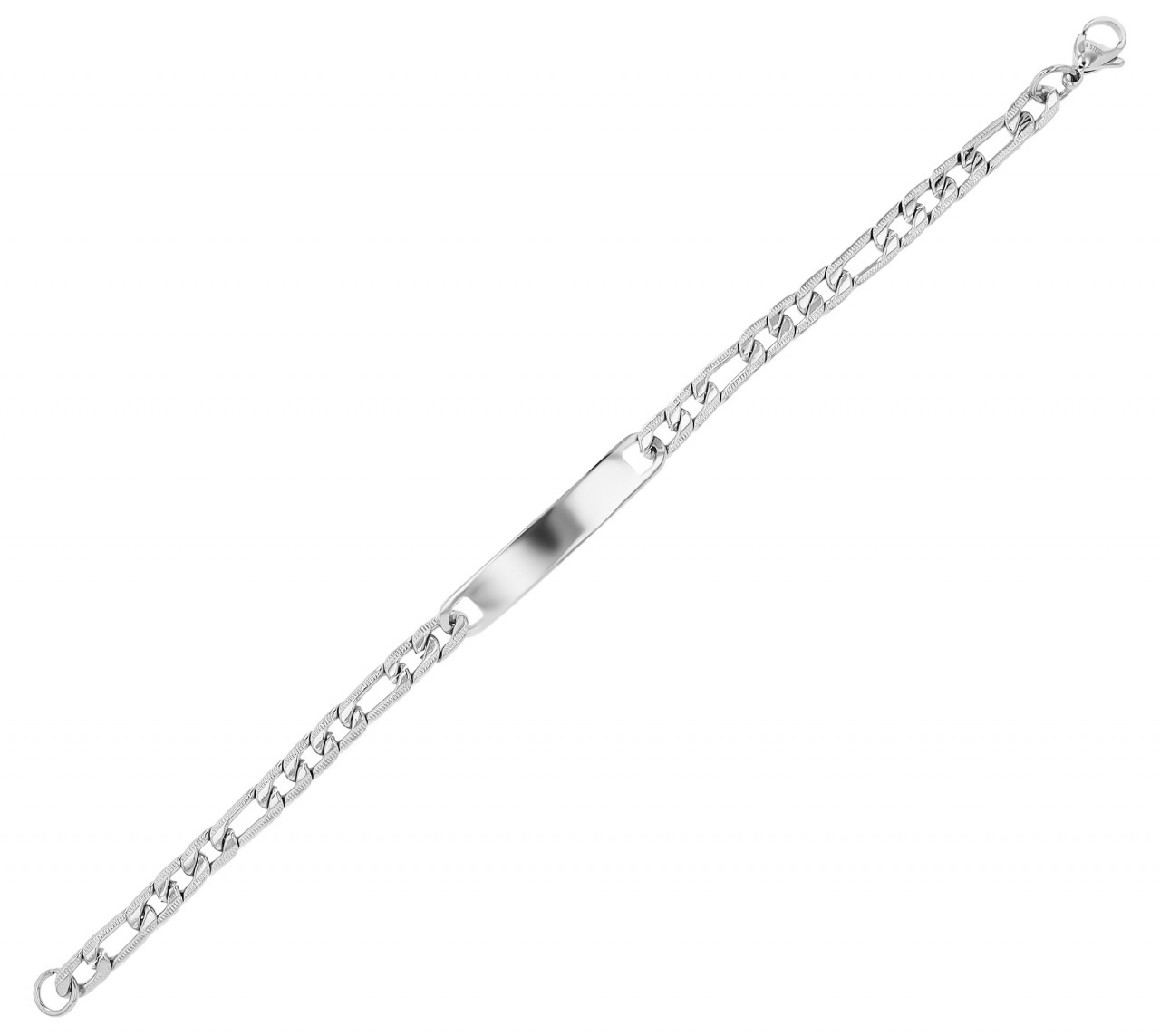 A pulseira Figaro da marca Accent tem 18 cm de comprimento, 5 mm de largura e 1,5 mm de espessura – a combinação perfeita de força e sutileza. Fabricado em aço inoxidável, promete não apenas durabilidade robusta, mas também uma beleza atemporal que resistirá ao teste do tempo. A disposição especial dos elementos da corrente é caracterizada por uma sequência alternada de elos alongados e ovais, que conferem à pulseira um charme marcante e elegante. Fechada com mosquetão, a pulseira Figaro oferece não só uma fixação segura, mas também um manuseio confortável. A placa de gravação, com 36 mm de comprimento e 6 mm de largura, oferece espaço para mensagens pessoais, seja um nome, uma data ou uma fonte significativa.