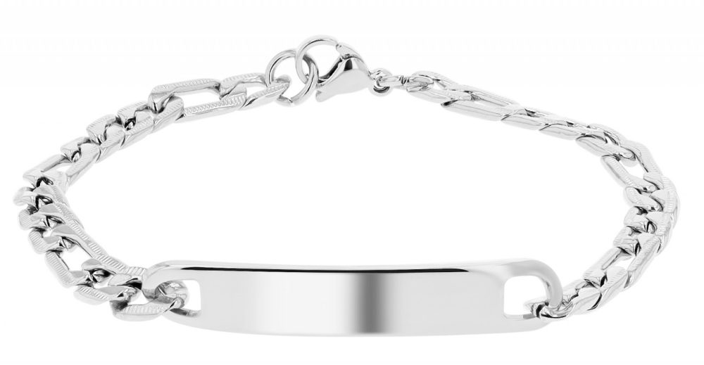 A pulseira Figaro da marca Accent tem 18 cm de comprimento, 5 mm de largura e 1,5 mm de espessura – a combinação perfeita de força e sutileza. Fabricado em aço inoxidável, promete não apenas durabilidade robusta, mas também uma beleza atemporal que resistirá ao teste do tempo. A disposição especial dos elementos da corrente é caracterizada por uma sequência alternada de elos alongados e ovais, que conferem à pulseira um charme marcante e elegante. Fechada com mosquetão, a pulseira Figaro oferece não só uma fixação segura, mas também um manuseio confortável. A placa de gravação, com 36 mm de comprimento e 6 mm de largura, oferece espaço para mensagens pessoais, seja um nome, uma data ou uma fonte significativa.