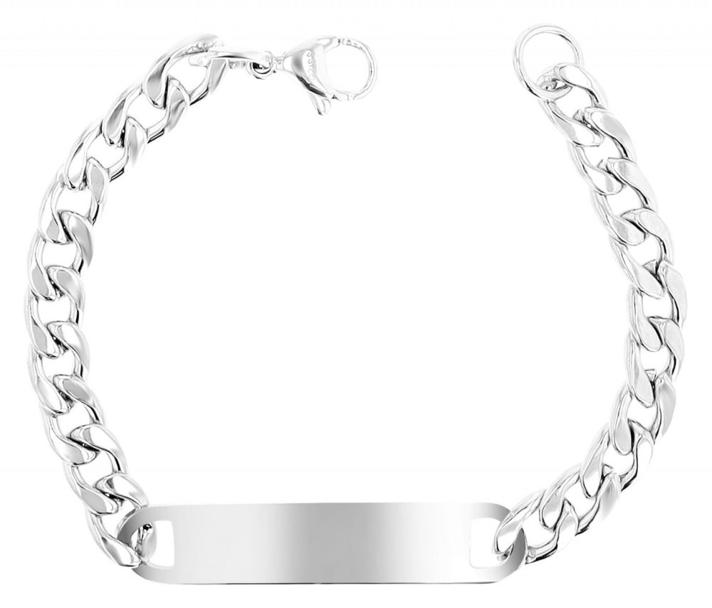 Medindo 18 cm de comprimento, 6,5 mm de largura e 2 mm de espessura, esta pulseira não é apenas robusta, mas também sutil – o equilíbrio ideal entre força e elegância. Feita de aço inoxidável de alta qualidade, a pulseira não só promete robustez duradoura, mas também uma beleza atemporal que dura. A pulseira é fechada com um mosquetão seguro, que não só proporciona estabilidade, mas também garante um manuseio confortável. A placa de gravação, com 42 mm de comprimento e 8 mm de largura, oferece espaço para mensagens pessoais. Um nome, uma data ou uma fonte profunda podem ser gravados aqui - uma forma única de dar um toque pessoal a esta joia.