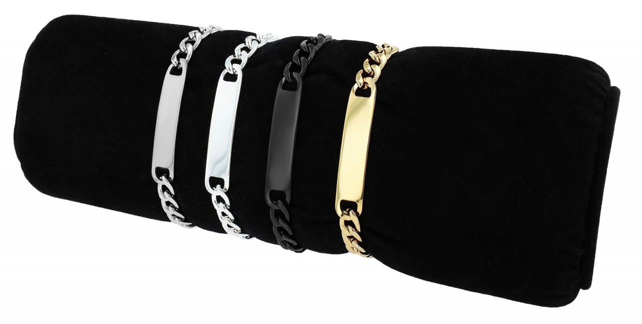 Medindo 18 cm de comprimento, 6,5 mm de largura e 2 mm de espessura, esta pulseira não é apenas robusta, mas também sutil – o equilíbrio ideal entre força e elegância. Feita de aço inoxidável de alta qualidade, a pulseira não só promete robustez duradoura, mas também uma beleza atemporal que dura. A pulseira é fechada com um mosquetão seguro, que não só proporciona estabilidade, mas também garante um manuseio confortável. A placa de gravação, com 42 mm de comprimento e 8 mm de largura, oferece espaço para mensagens pessoais. Um nome, uma data ou uma fonte profunda podem ser gravados aqui - uma forma única de dar um toque pessoal a esta joia.
