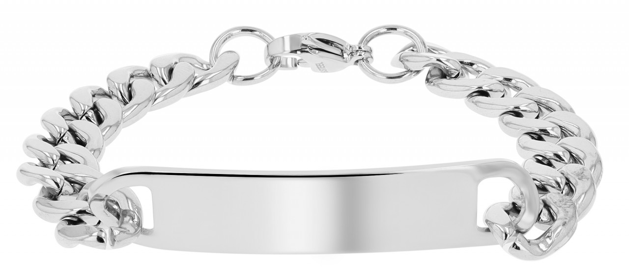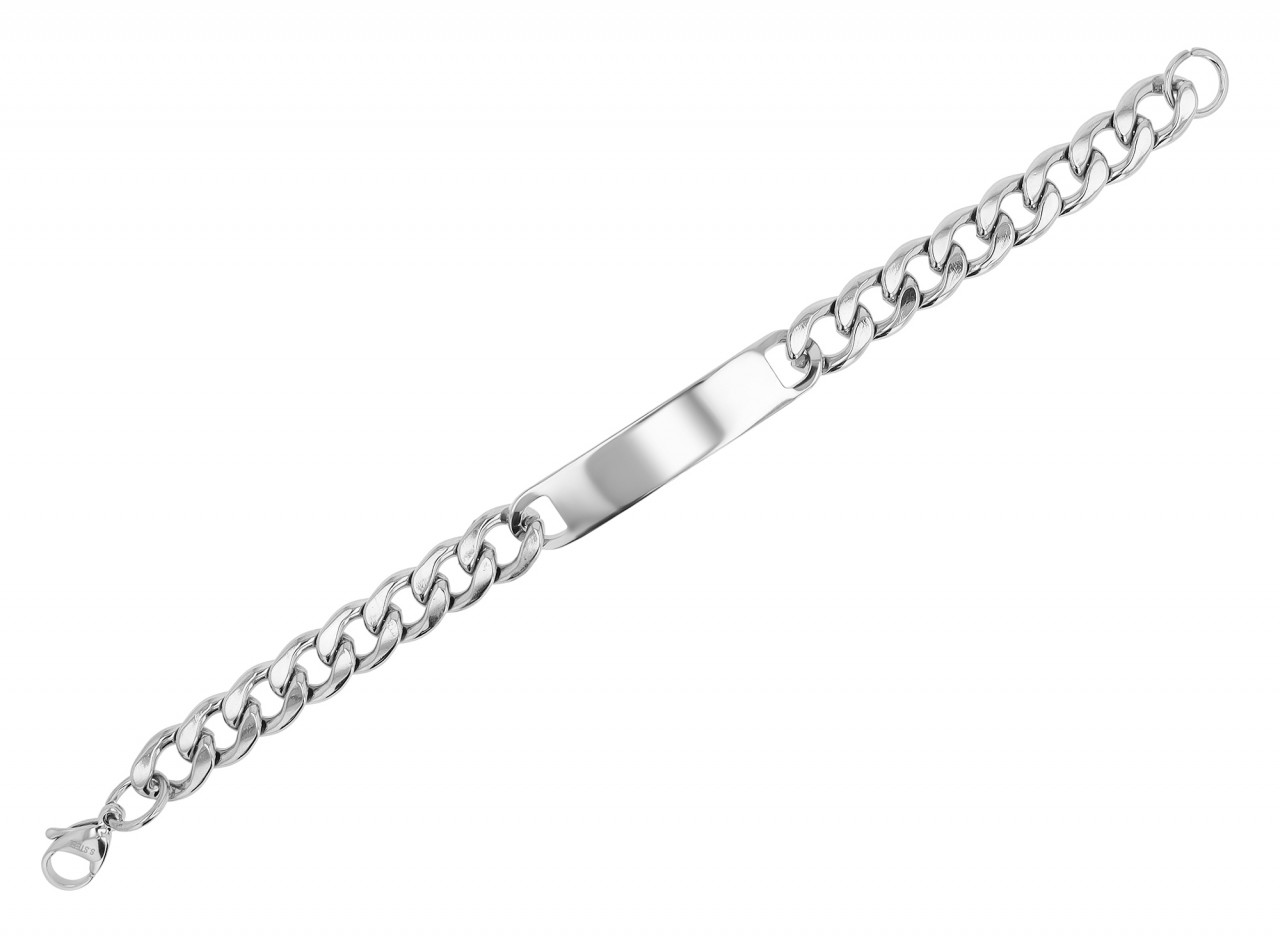 Medindo 21 cm de comprimento, 10 mm de largura e 3 mm de espessura, esta pulseira não é apenas robusta, mas também sutil – o equilíbrio ideal entre força e elegância. Feita de aço inoxidável de alta qualidade, a pulseira não só promete robustez duradoura, mas também uma beleza atemporal que dura. A pulseira é fechada com um mosquetão seguro, que não só proporciona estabilidade, mas também garante um manuseio confortável. A placa de gravação, com 50 mm de comprimento e 10 mm de largura, oferece espaço para mensagens pessoais. Um nome, uma data ou uma fonte profunda podem ser gravados aqui – uma forma única de dar um toque pessoal a esta joia.