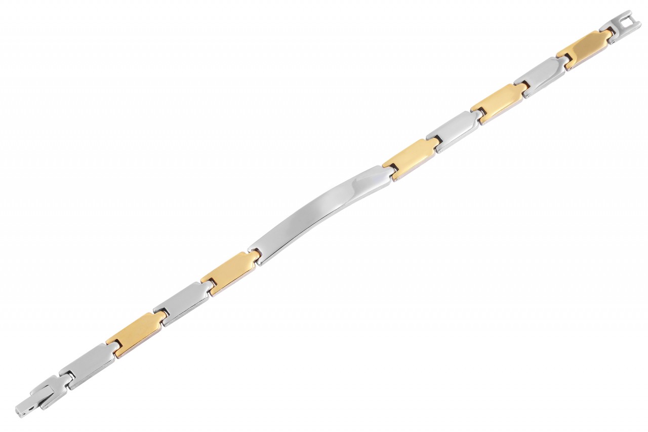 A pulseira de joias da marca Praktik é feita em aço inoxidável polido, o que lhe confere um visual moderno e estiloso. Por utilizar um material de alta qualidade, a pulseira é durável, muito robusta e resistente a arranhões e desgaste. O aço inoxidável também é ideal para quem sofre de alergias, pois é particularmente amigo da pele. A placa de identificação polida da pulseira pode ser gravada individualmente ao seu gosto, tornando-a um ótimo presente para ocasiões especiais. Os elementos individuais da pulseira podem ser removidos conforme desejado, para que o comprimento possa ser ajustado a qualquer pulso. O tamanho desta faixa é de 20 cm, largura de 6 mm e espessura de 2 mm. O fecho com clipe permite que você coloque a joia de forma rápida e fácil; é impossível abri-la sozinho.