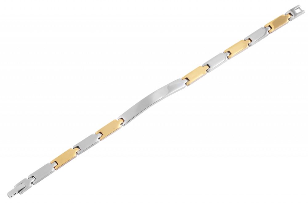 A pulseira de joias da marca Praktik é feita em aço inoxidável polido, o que lhe confere um visual moderno e estiloso. Por utilizar um material de alta qualidade, a pulseira é durável, muito robusta e resistente a arranhões e desgaste. O aço inoxidável também é ideal para quem sofre de alergias, pois é particularmente amigo da pele. A placa de identificação polida da pulseira pode ser gravada individualmente ao seu gosto, tornando-a um ótimo presente para ocasiões especiais. Os elementos individuais da pulseira podem ser removidos conforme desejado, para que o comprimento possa ser ajustado a qualquer pulso. O tamanho desta faixa é de 20 cm, largura de 6 mm e espessura de 2 mm. O fecho com clipe permite que você coloque a joia de forma rápida e fácil; é impossível abri-la sozinho.