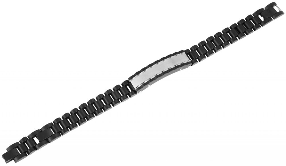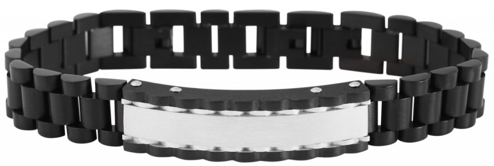 A pulseira de elos com placa de identificação integrada é feita de aço inoxidável. A pulseira é brilhante, a placa de identificação é mate e oferece espaço suficiente para vários tipos de gravuras. Tem comprimento de 43 mm, largura de 12 mm e espessura de 5 mm. Isso significa que a joia pode se tornar um acessório muito pessoal por meio da gravação. A pulseira pode ser fixada ao pulso com um clipe de aço inoxidável. Tem 21 cm de comprimento e pode ser ampliado até 1 cm utilizando o elemento adicional incluído. A largura é de 12 mm e a espessura é de 5 mm. Uma excelente ideia de presente pessoal para gravuras individuais.