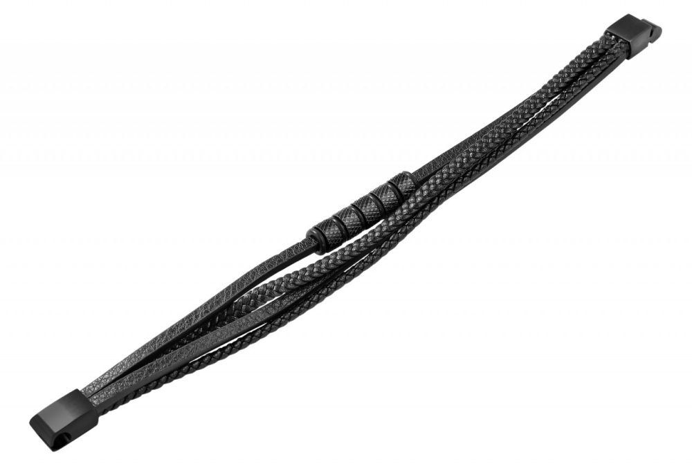 A pulseira preta da marca Praktik é feita em imitação de couro e está disponível nos comprimentos de 19 cm, 21 cm e 23 cm. A pulseira de quatro fileiras consiste em uma pulseira de couro sintético trançado, um cordão trançado e duas alças lisas. Elementos de aço inoxidável estruturados e brilhantes e anéis de borracha são apresentados em uma pulseira, que completam habilmente o design da pulseira. Com um fecho magnético prático e sólido, a pulseira pode ser aberta e fechada com facilidade e também pode ser desenhada individualmente com pequenas gravuras. O fecho fosco é feito de aço inoxidável e com acabamento em revestimento iônico de alta qualidade. Couro sintético e aço inoxidável tornam…