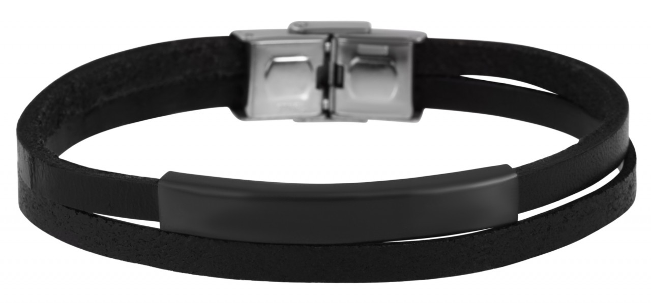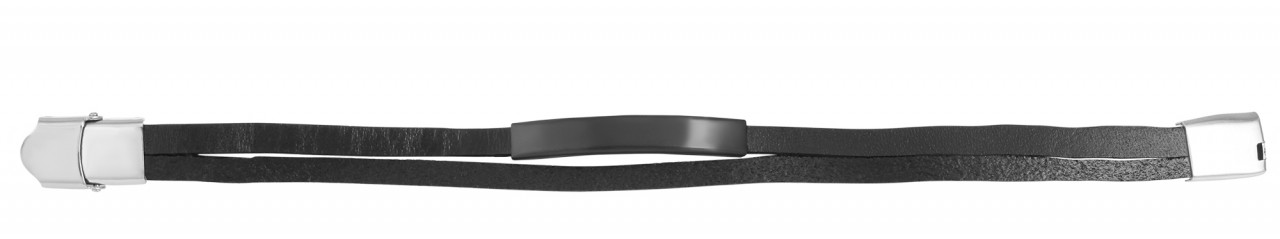 A pulseira de joias da marca Praktik foi feita com duas tiras planas de couro genuíno. Um elemento simples de aço inoxidável preto é preso a uma das duas pulseiras de couro, que tem acabamento fosco e é ideal para gravações. A pulseira da moda pode ser aberta e fechada com um fecho de gancho prateado, que também é feito de aço inoxidável. As dimensões resultam de um comprimento total de 21 cm, largura de 1,2 cm e altura de 5 mm. Uma joia personalizada é um ótimo presente.