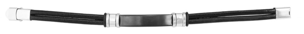A pulseira de couro genuíno da marca Praktik é feita de duas tiras redondas e lisas de couro genuíno. O centro da pulseira é decorado com uma placa de gravação em aço inoxidável preto, decorada em ambos os lados com três ilhós de aço inoxidável prateado de tamanhos diferentes. A pulseira simples pode ser aberta e fechada com um fecho de gancho prateado, que também é feito de aço inoxidável. As dimensões resultam de um comprimento total de 21 cm, largura de 1 cm e espessura de 0,6 cm. O elemento de aço inoxidável é ideal para gravações. Uma joia personalizada é um ótimo presente.