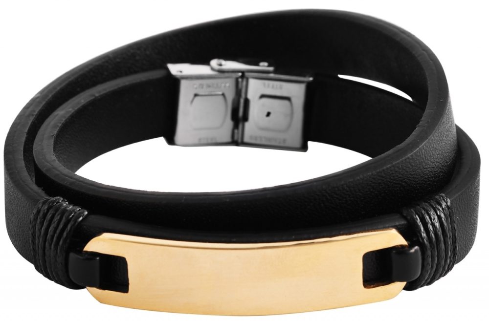 A pulseira envolvente da marca Praktik é feita de couro genuíno e consiste em uma pulseira de couro genuíno com 43 cm de comprimento. A pulseira é enrolada duas vezes no pulso, o que a torna um atrativo muito especial. Uma placa de aço inoxidável é fixada à pulseira de couro com uma pulseira de couro fina. Isto é ideal para gravuras. A moderna pulseira de joias pode ser aberta e fechada com um fecho de gancho prateado, que também é feito de aço inoxidável. Uma joia personalizada é um bom presente.