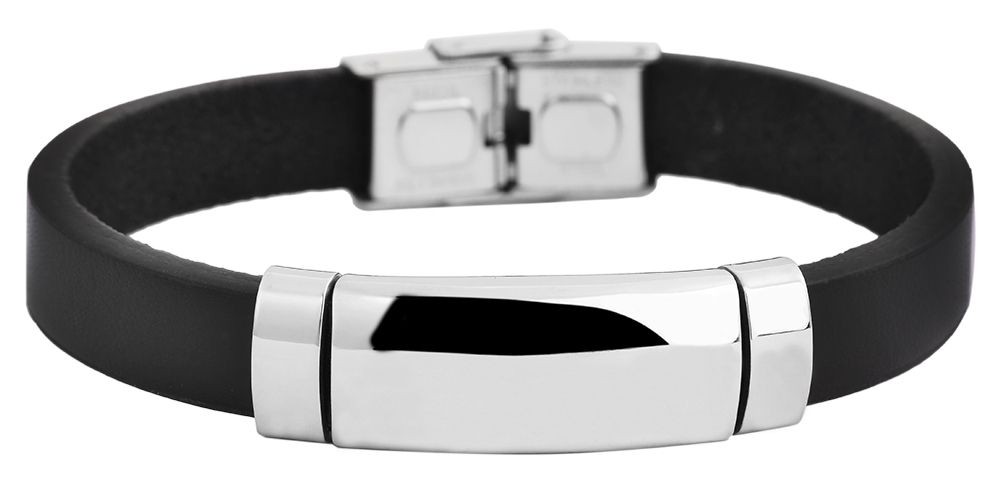 A pulseira de couro genuíno da marca Praktik é feita de uma pulseira de couro de 8 mm de largura, decorada com um elemento simples de aço inoxidável prateado no meio. Ideal como placa de gravação para todos os tipos de gravuras. O comprimento total da pulseira de joalheria é de 21 cm. Pode ser aberto e fechado com fecho de gancho prateado, também feito de aço inoxidável. Uma pulseira de joalheria simples que é um ótimo presente personalizado.