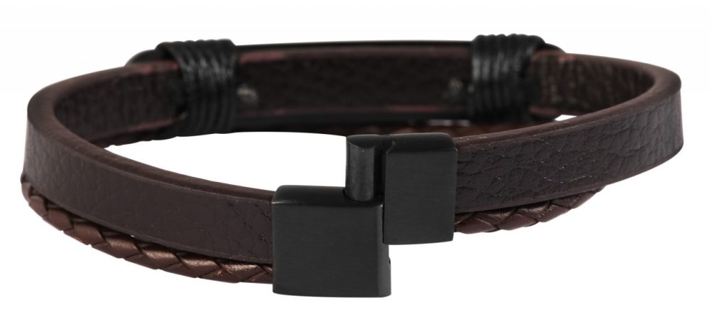 A pulseira de couro genuíno da marca Praktik é feita de uma pulseira de couro plana de 1 cm de largura e uma pulseira de couro trançado de 3 mm de largura. Um elemento de aço inoxidável preto em forma de seta está preso às tiras de couro mais largas. A moderna pulseira de joias pode ser aberta e fechada com um fecho magnético de aço inoxidável preto. As dimensões resultam de um comprimento total de 20 cm, largura de 1,3 cm e espessura de 3 mm. A pulseira pode ser combinada com qualquer roupa e é um ótimo presente.