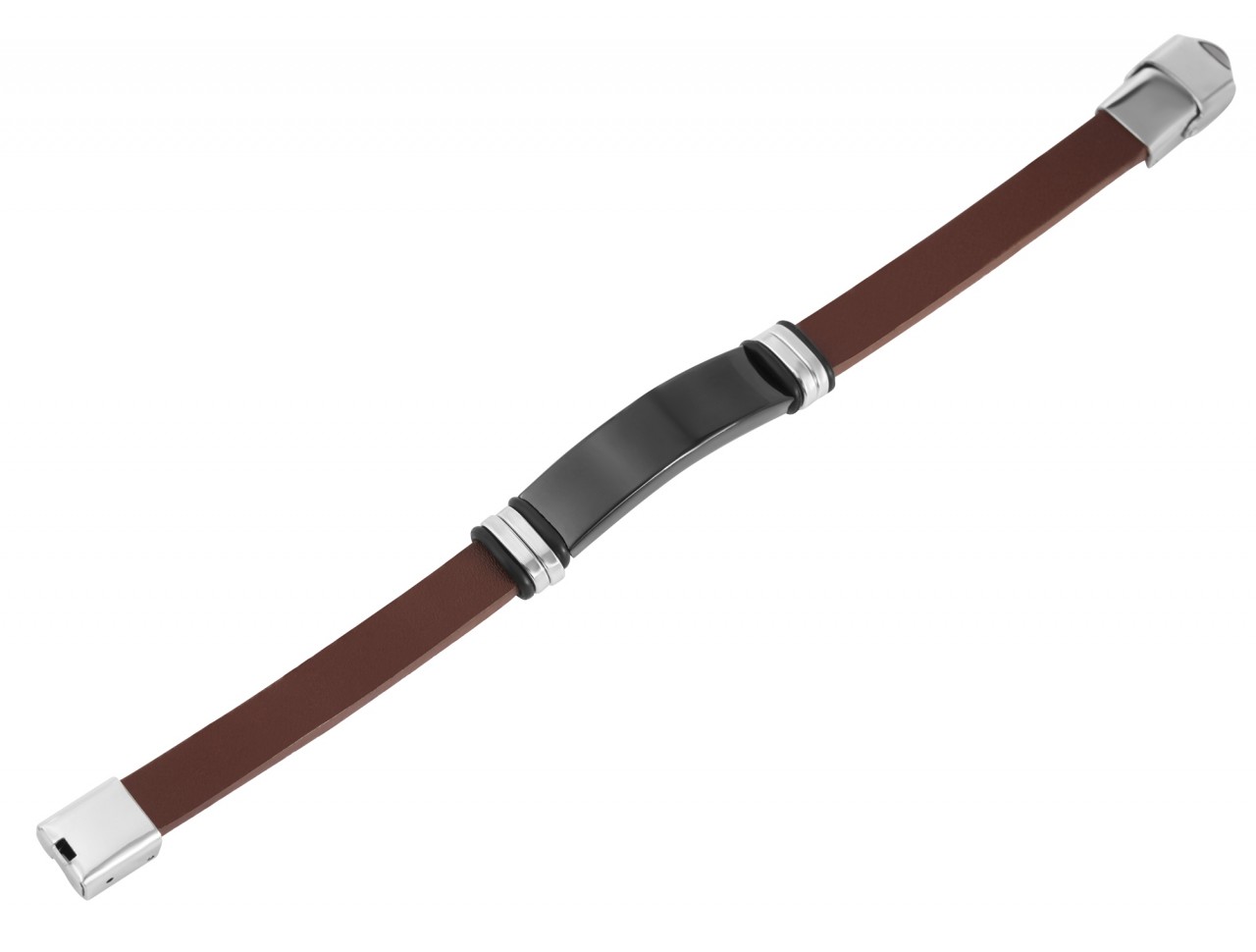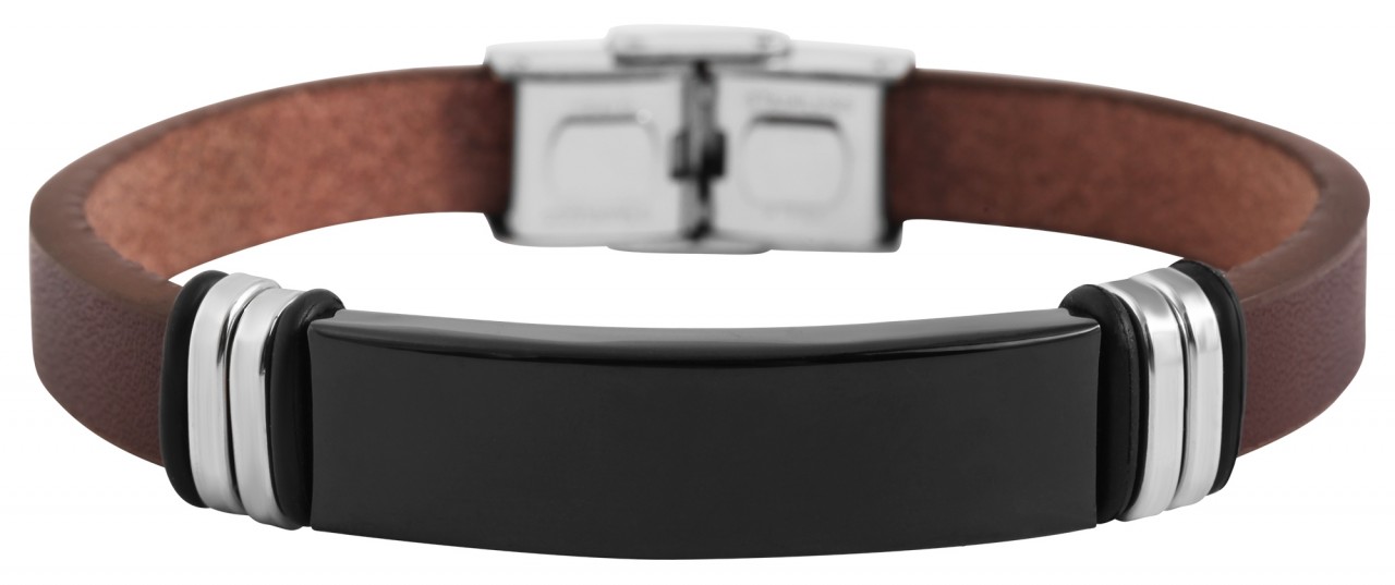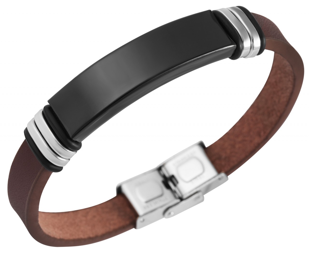 A pulseira de couro genuíno da marca Praktik consiste em uma pulseira de couro liso com 10 mm de largura. No centro está incorporado um elemento de aço inoxidável com 4 cm de comprimento, ideal como placa de gravação. Este é cercado por dois anéis ovais de aço inoxidável e borracha. Estes completam a imagem geral harmoniosa da pulseira de joias da moda. A pulseira pode ser aberta e fechada com um fecho de gancho brilhante. O comprimento total da joia é de 21 cm, a largura da placa de gravação é de 12 mm e a espessura do material é de 5 mm.