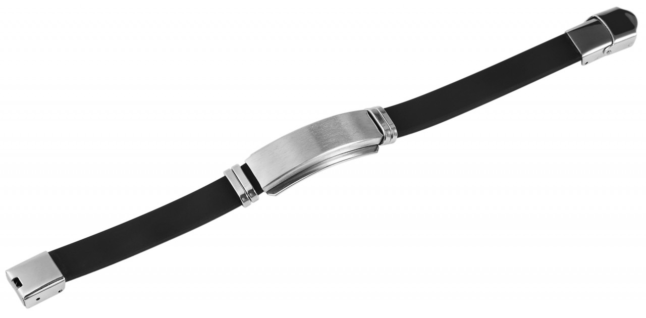 A pulseira da marca Akzent é feita de silicone e tem 21 cm de comprimento, 1 cm de largura e 3 mm de espessura. A pulseira também possui um elemento de aço inoxidável que apresenta motivos diferentes dependendo do modelo. As dimensões do elemento de aço inoxidável são 4 cm de comprimento, 1,2 cm de largura e 7 mm de espessura. A pulseira pode ser convenientemente aberta e fechada com um fecho de gancho, que também é feito de aço inoxidável.