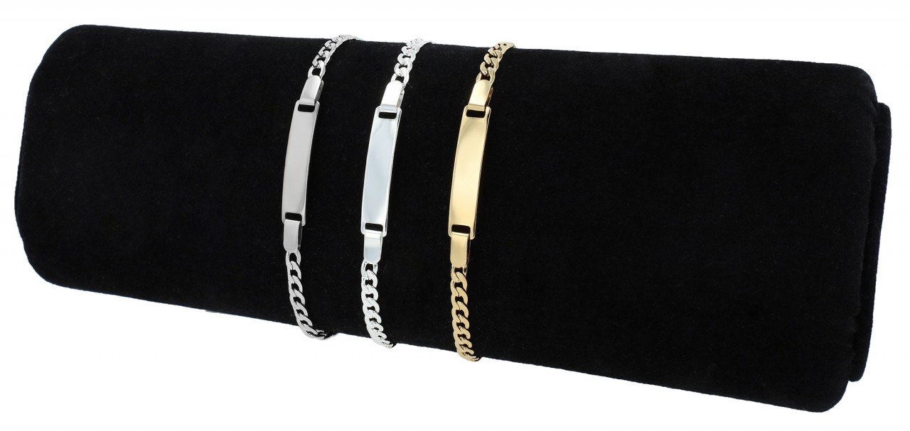 Medindo 18 cm de comprimento, 4 mm de largura e 1 mm de espessura, esta pulseira não é apenas robusta, mas também sutil – o equilíbrio ideal entre força e elegância. Feita de aço inoxidável de alta qualidade, a pulseira não só promete robustez duradoura, mas também uma beleza atemporal que dura. A pulseira é fechada com um mosquetão seguro, que não só proporciona estabilidade, mas também garante um manuseio confortável. A placa de gravação, com 28 mm de comprimento e 6 mm de largura, oferece espaço para mensagens pessoais. Um nome, uma data ou uma fonte profunda podem ser gravados aqui – uma forma única de dar um toque pessoal a esta joia.