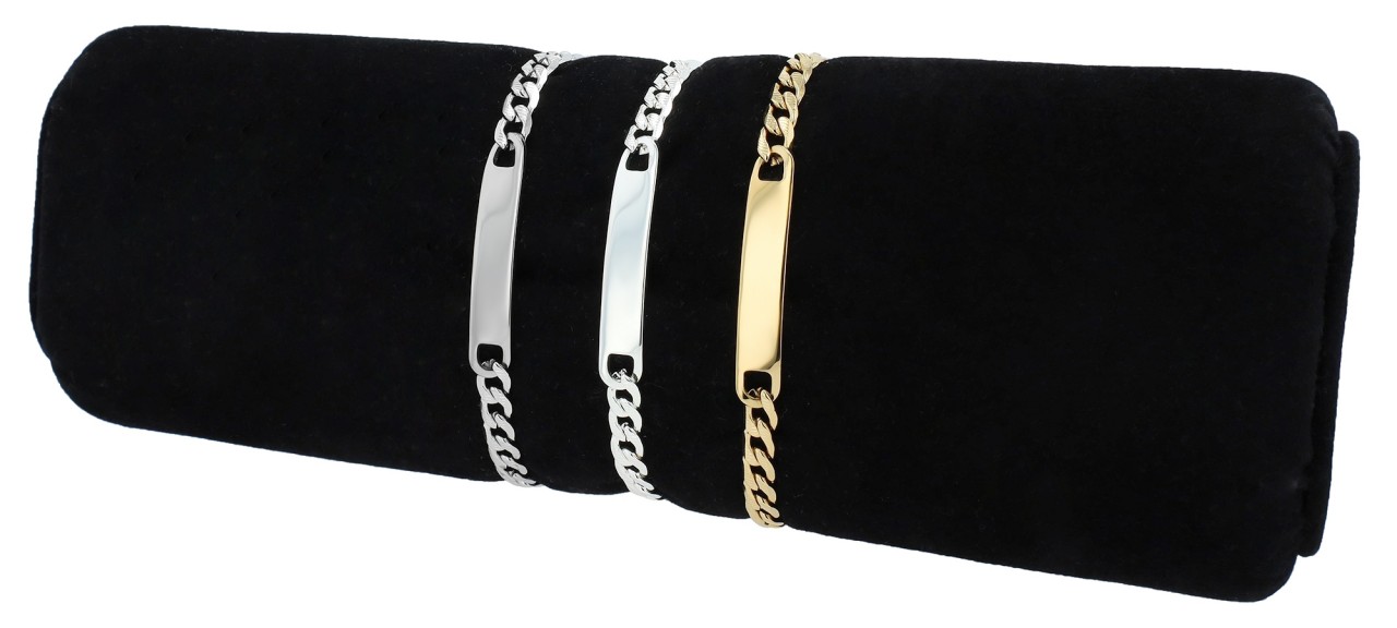 Medindo 18 cm de comprimento, 5 mm de largura e 2 mm de espessura, esta pulseira não é apenas robusta, mas também sutil – o equilíbrio ideal entre força e elegância. Feita de aço inoxidável de alta qualidade, a pulseira não só promete robustez duradoura, mas também uma beleza atemporal que dura. A pulseira é fechada com um mosquetão seguro, que não só proporciona estabilidade, mas também garante um manuseio confortável. A placa de gravação, com 36 mm de comprimento e 6 mm de largura, oferece espaço para mensagens pessoais. Um nome, uma data ou uma fonte profunda podem ser gravados aqui – uma forma única de dar um toque pessoal a esta joia.