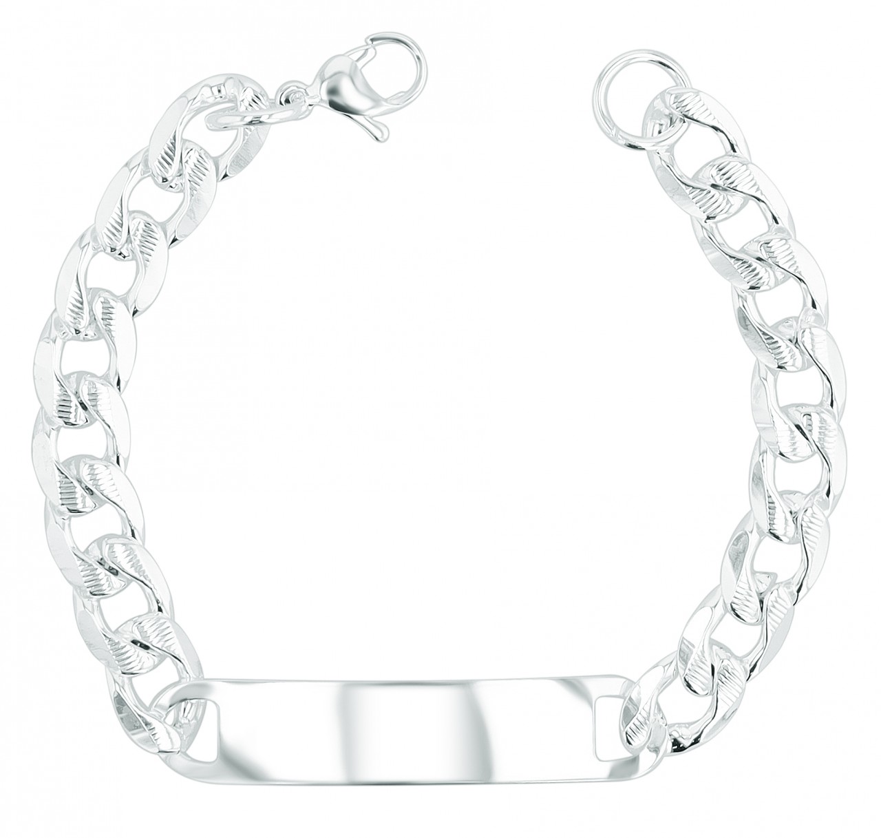Medindo 21 cm de comprimento, 9 mm de largura e 3 mm de espessura, esta pulseira não é apenas robusta, mas também sutil – o equilíbrio ideal entre força e elegância. Feita de aço inoxidável de alta qualidade, a pulseira não só promete robustez duradoura, mas também uma beleza atemporal que dura. A pulseira é fechada com um mosquetão seguro, que não só proporciona estabilidade, mas também garante um manuseio confortável. A placa de gravação, com 50 mm de comprimento e 10 mm de largura, oferece espaço para mensagens pessoais. Um nome, uma data ou uma fonte profunda podem ser gravados aqui - uma forma única de dar um toque pessoal a esta joia.