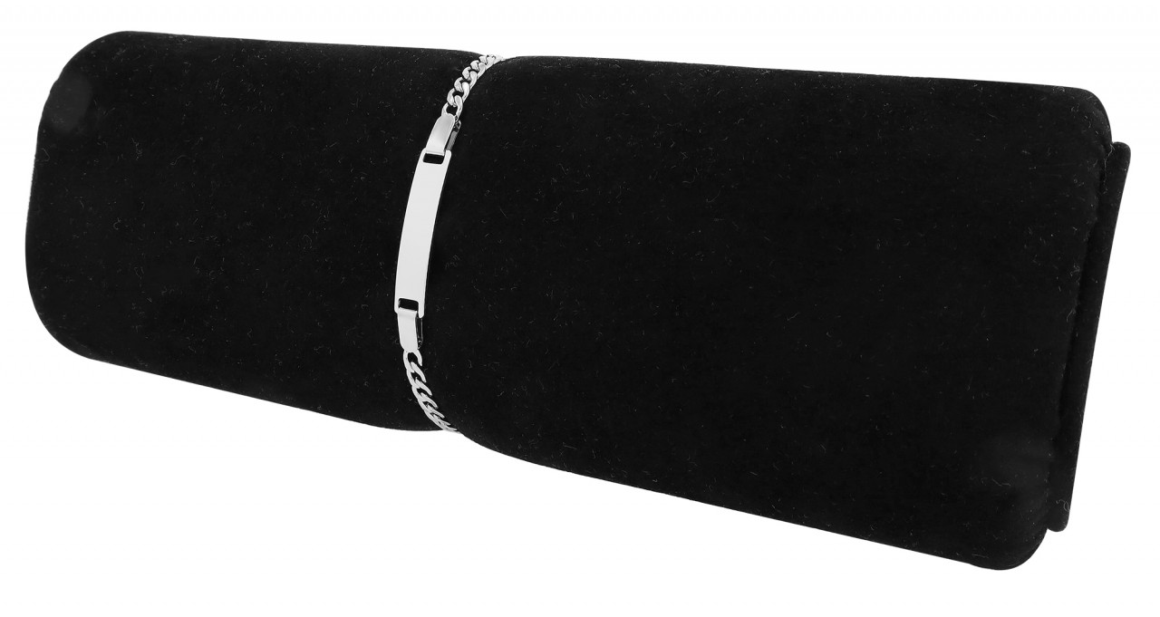 A pulseira de destaque é feita em um padrão blindado. Tem 18 cm de comprimento e contém no meio uma placa de gravação de 29 mm de comprimento e 6 mm de largura. Tem uma espessura de 1 mm e pode ser fornecida com vários tipos de gravuras. A pulseira pode ser aberta e fechada com um mosquetão resistente, que também é feito de aço inoxidável. As dimensões da pulseira são 18 cm de comprimento, 5 mm de largura e 1,5 mm de altura.