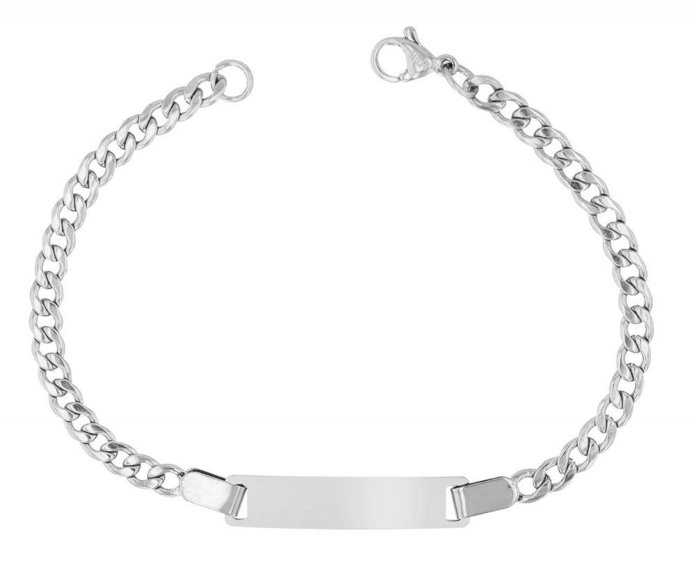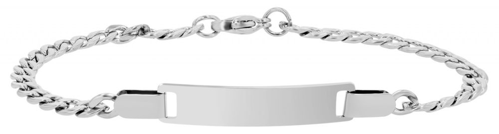 A pulseira de destaque é feita em um padrão blindado. Tem 18 cm de comprimento e contém no meio uma placa de gravação de 29 mm de comprimento e 6 mm de largura. Tem uma espessura de 1 mm e pode ser fornecida com vários tipos de gravuras. A pulseira pode ser aberta e fechada com um mosquetão resistente, que também é feito de aço inoxidável. As dimensões da pulseira são 18 cm de comprimento, 5 mm de largura e 1,5 mm de altura.