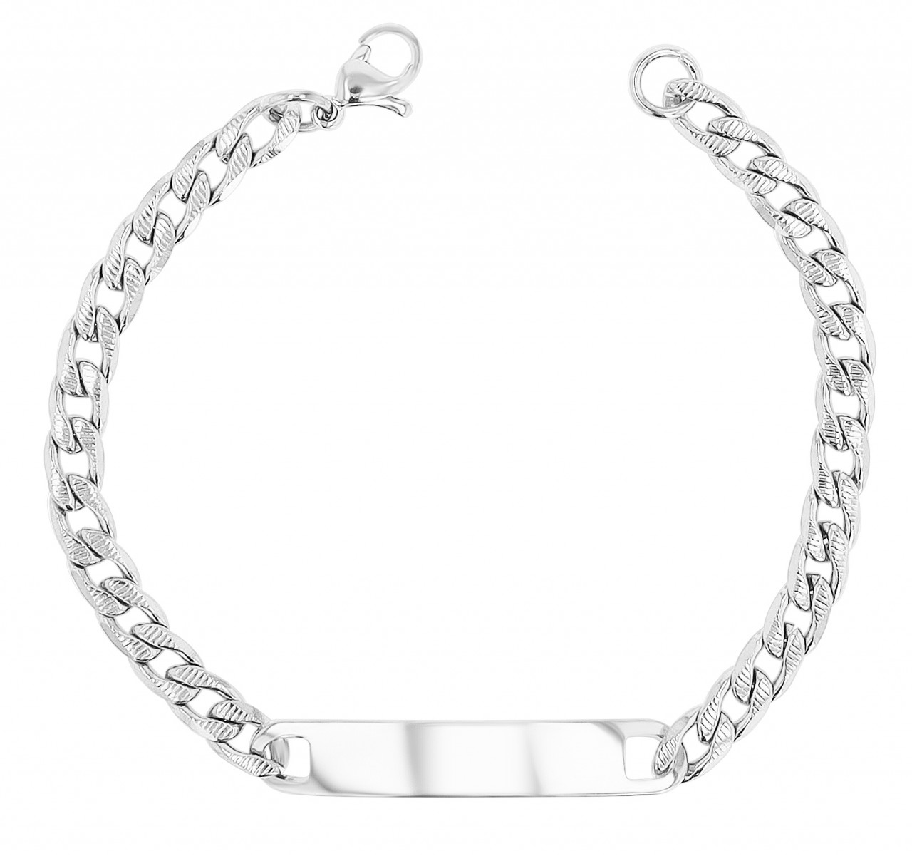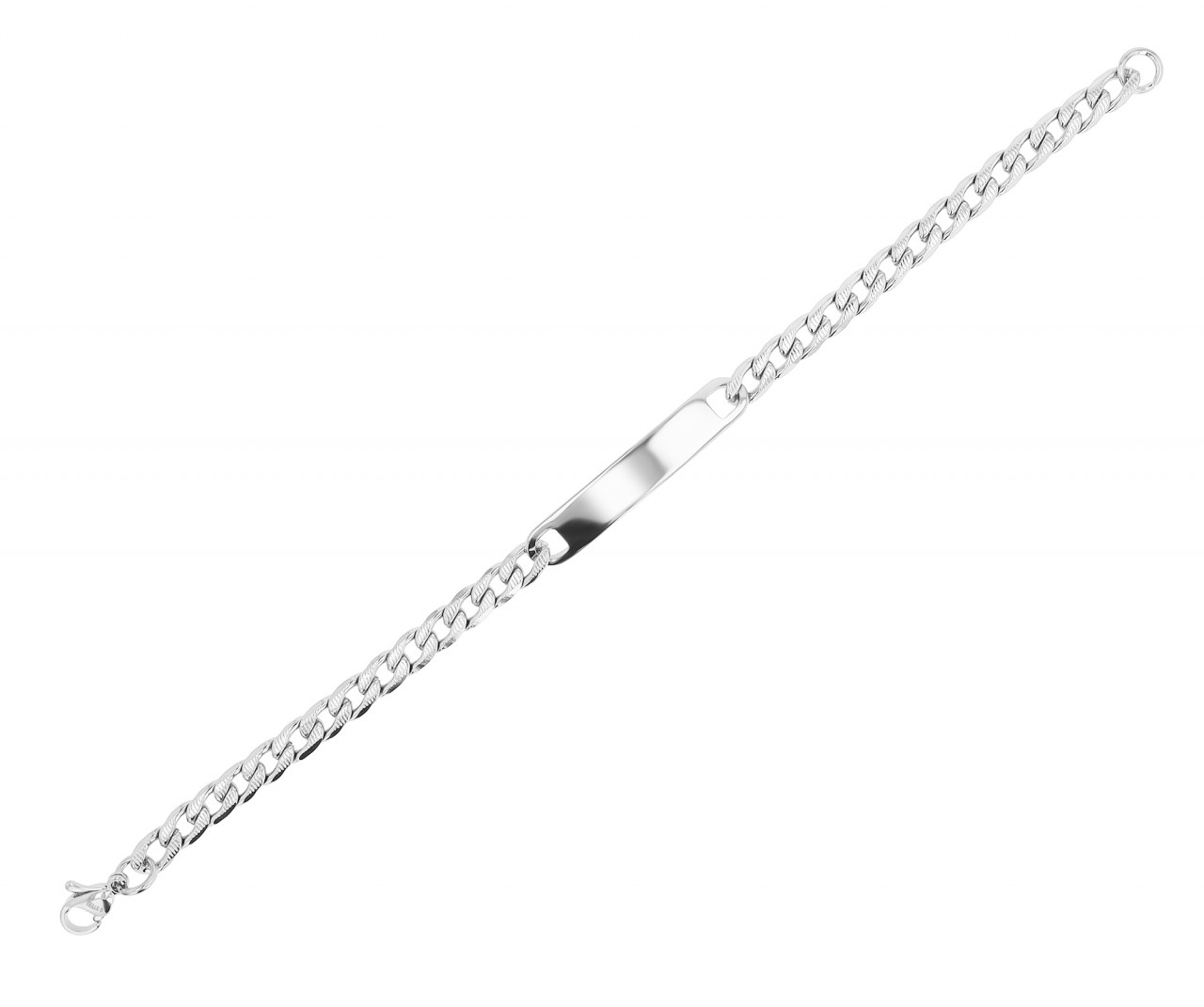 Medindo 18 cm de comprimento, 5 mm de largura e 2 mm de espessura, esta pulseira não é apenas robusta, mas também sutil – o equilíbrio ideal entre força e elegância. Feita de aço inoxidável de alta qualidade, a pulseira não só promete robustez duradoura, mas também uma beleza atemporal que dura. A pulseira é fechada com um mosquetão seguro, que não só proporciona estabilidade, mas também garante um manuseio confortável. A placa de gravação, com 36 mm de comprimento e 6 mm de largura, oferece espaço para mensagens pessoais. Um nome, uma data ou uma fonte profunda podem ser gravados aqui - uma forma única de dar um toque pessoal a esta joia.