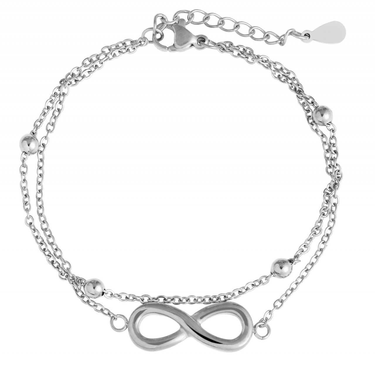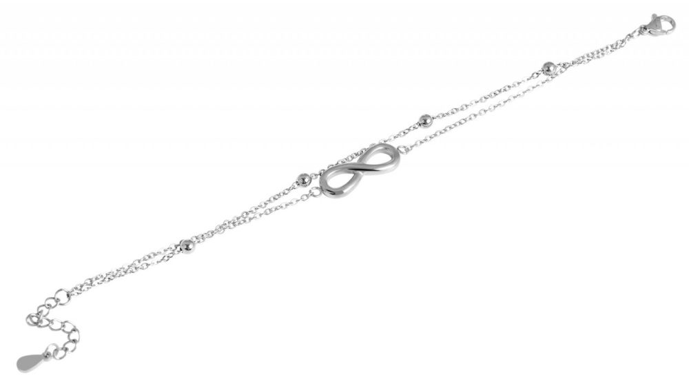 Pulseira Akzent de Corrente Prateada em Aço Inoxidável, modelo Irene. Com Largura de 0.8 cm, altura de 0.3 cm e comprimento de total de 17 cm com extensão de 3 cm.