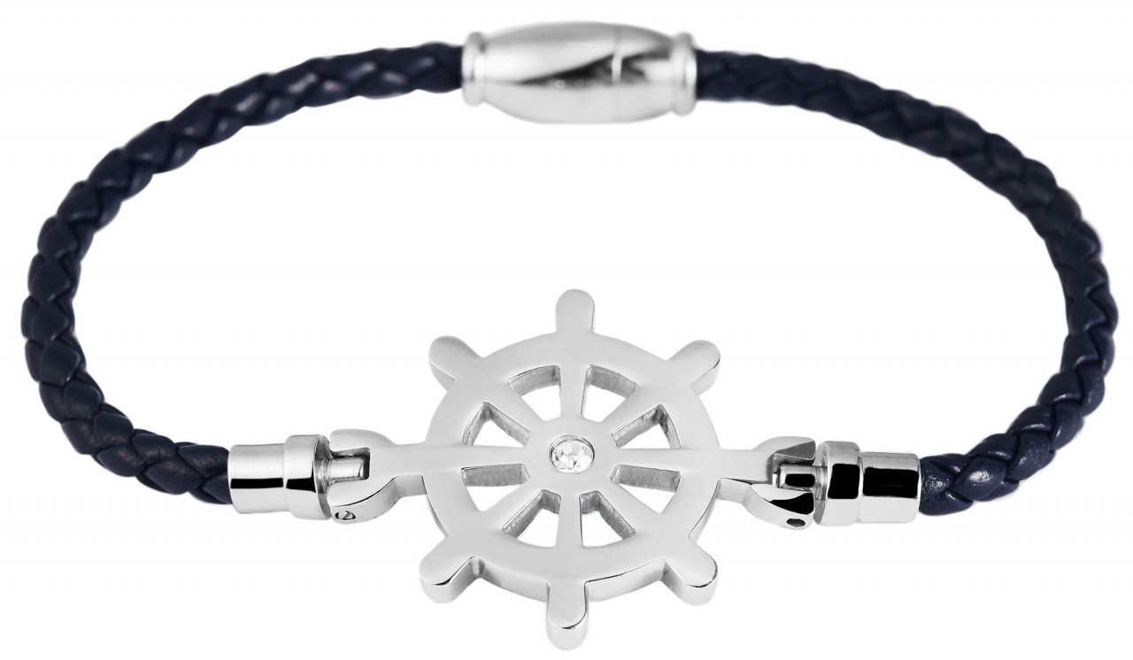 A pulseira marítima da marca Praktik impressiona pelo seu design delicado e acabamento de primeira classe. O couro fino se ajusta suavemente ao pulso e garante um ajuste confortável. O elemento de aço inoxidável em forma de volante é o destaque da pulseira e confere-lhe um toque de aventura e estilo. Com seus detalhes precisos e acabamento brilhante, vai chamar a atenção de todos. O prático fecho magnético em aço inoxidável garante uma fixação segura e facilita a colocação e a retirada. A integração perfeita do fecho no design garante uma aparência geral harmoniosa. Com 18 cm de comprimento e 3 cm de espessura, esta pulseira é uma joia de referência para qualquer pulso. Pode ser…