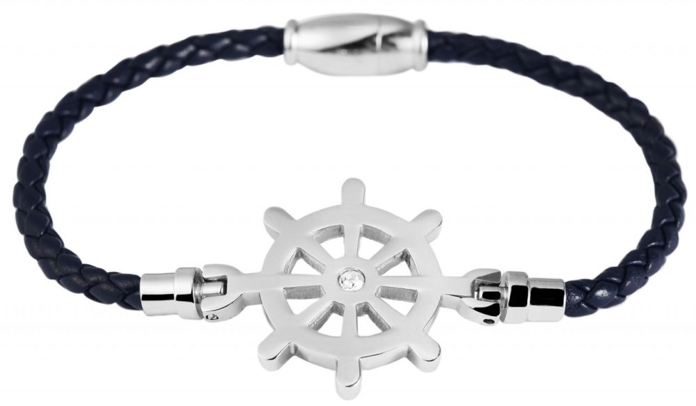 A pulseira marítima da marca Praktik impressiona pelo seu design delicado e acabamento de primeira classe. O couro fino se ajusta suavemente ao pulso e garante um ajuste confortável. O elemento de aço inoxidável em forma de volante é o destaque da pulseira e confere-lhe um toque de aventura e estilo. Com seus detalhes precisos e acabamento brilhante, vai chamar a atenção de todos. O prático fecho magnético em aço inoxidável garante uma fixação segura e facilita a colocação e a retirada. A integração perfeita do fecho no design garante uma aparência geral harmoniosa. Com 18 cm de comprimento e 3 cm de espessura, esta pulseira é uma joia de referência para qualquer pulso. Pode ser usado sozinho para criar um foco cativante no elemento marítimo ou em combinação…