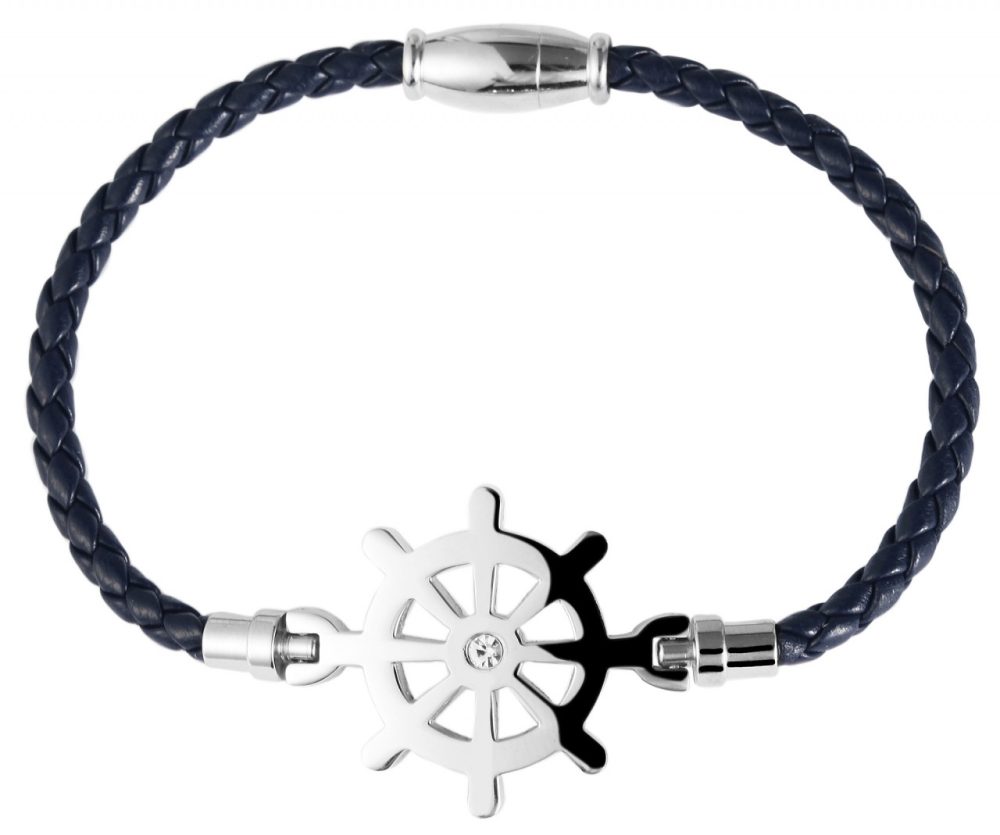 A pulseira marítima da marca Praktik impressiona pelo seu design delicado e acabamento de primeira classe. O couro fino se ajusta suavemente ao pulso e garante um ajuste confortável. O elemento de aço inoxidável em forma de volante é o destaque da pulseira e confere-lhe um toque de aventura e estilo. Com seus detalhes precisos e acabamento brilhante, vai chamar a atenção de todos. O prático fecho magnético em aço inoxidável garante uma fixação segura e facilita a colocação e a retirada. A integração perfeita do fecho no design garante uma aparência geral harmoniosa. Com 18 cm de comprimento e 3 cm de espessura, esta pulseira é uma joia de referência para qualquer pulso. Pode ser…