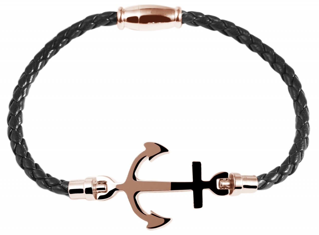 Akzent® Pulseira Trançada em Couro Genuíno com Símbolo de Âncora