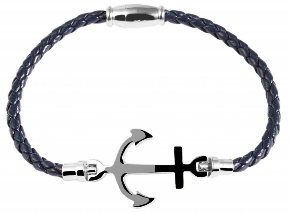 A pulseira de couro genuíno da marca Praktik foi feita a partir de uma pulseira de couro genuíno trançado. Um elemento de aço inoxidável em forma de âncora é fixado no meio. É polido e confere à pulseira um aspecto especial e marítimo. A moderna pulseira de joias pode ser aberta e fechada com um fecho magnético. O comprimento total da pulseira é de 18 cm, o elemento de aço inoxidável tem 1,8 cm de largura.