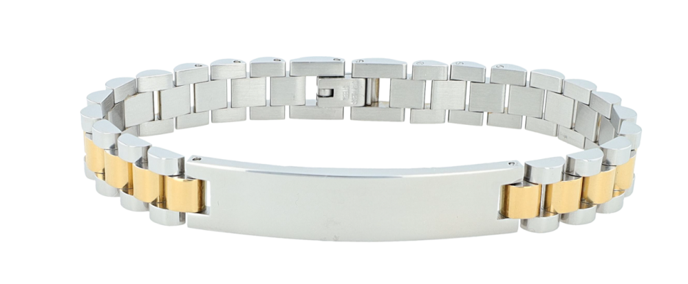 Feita em aço inoxidável de alta qualidade, esta pulseira combina elementos brilhantes com uma placa de gravação polida. Medindo 20,5 cm de comprimento, 10 mm de largura e 2 mm de espessura, oferece uma estética robusta e sofisticada. A placa de identificação, com dimensões de 40 x 10 mm, oferece espaço suficiente para mensagens pessoais, iniciais ou símbolos. Outro aspeto prático desta pulseira gravada é a capacidade de remover elementos individuais para ajustar individualmente o comprimento. Isso garante um ajuste perfeito e confortável. O fecho do clipe não só garante uma fixação segura, mas também facilita a colocação e a remoção.