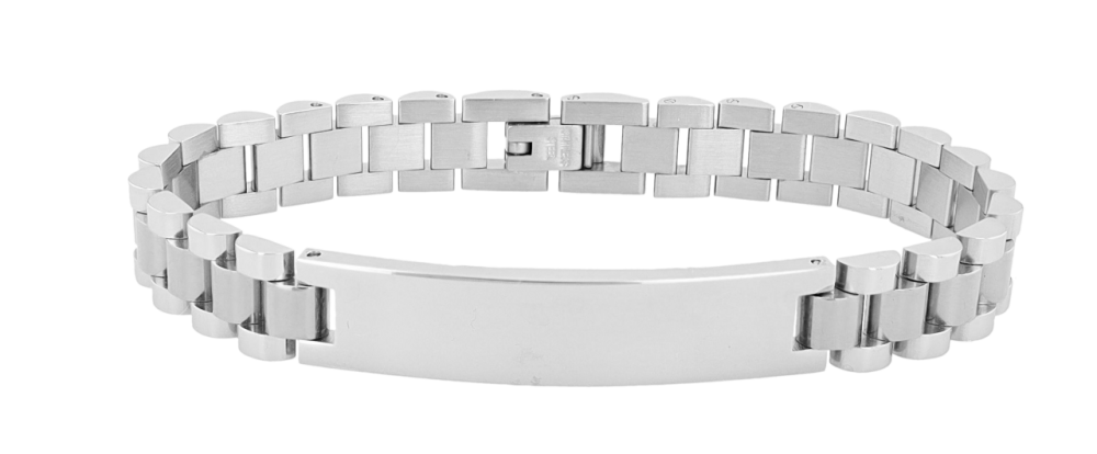 Feita em aço inoxidável de alta qualidade, esta pulseira combina elementos brilhantes com uma placa de gravação polida. Medindo 20,5 cm de comprimento, 10 mm de largura e 2 mm de espessura, oferece uma estética robusta e sofisticada. A placa de identificação, com dimensões de 40 x 10 mm, oferece espaço suficiente para mensagens pessoais, iniciais ou símbolos. Outro aspeto prático desta pulseira gravada é a capacidade de remover elementos individuais para ajustar individualmente o comprimento. Isso garante um ajuste perfeito e confortável. O fecho do clipe não só garante uma fixação segura, mas também facilita a colocação e a remoção.