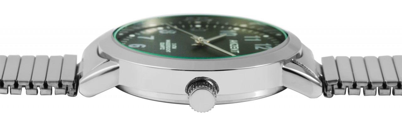 O relógio de pulso analógico masculino de 3 ponteiros da marca Praktik possui um movimento de quartzo de alta qualidade. O cordão de aço inoxidável tem 18 mm de largura na extremidade e pode ser facilmente puxado pelo pulso com o elástico. O comprimento total do relógio é de 20 cm. A caixa de metal com vidro mineral tem um diâmetro de 37 mm e uma altura de 9 mm. O fundo da caixa é feito de aço inoxidável. Além disso, o relógio é testado com pressão de 5 ATM. Os ponteiros e os números têm a mesma cor, combinam bem com a aparência geral do relógio e contrastam com a cor do mostrador, para que as horas sejam fáceis de ler. O relógio masculino também possui exibição de data.