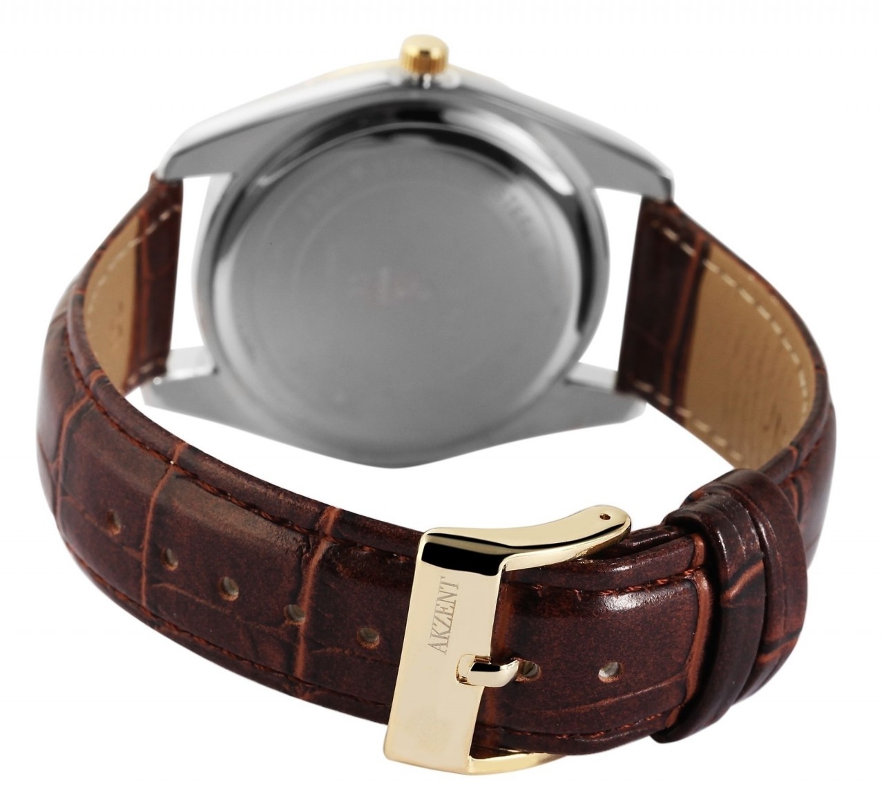 O relógio analógico masculino da marca Praktik possui um movimento de quartzo de alta qualidade. O nome do modelo é AK0084. A pulseira em imitação de couro tem 20 mm de largura e abre com uma fivela. O comprimento total é de 20 cm. A caixa de metal com vidro mineral tem dimensão de 39 mm e altura de caixa de 10 mm. A tampa da caixa é feita de aço inoxidável. O acabamento em cristal no mostrador também é um destaque visual. O relógio é testado com pressão de 3 ATM. O relógio masculino com destaque possui os seguintes recursos: Exibição de data. Exibição durante a semana.