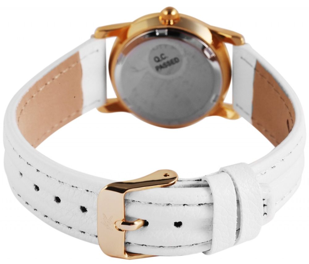O relógio analógico feminino da marca Praktik possui movimento de quartzo de alta qualidade. A pulseira em imitação de couro tem 18 mm de largura e abre com uma fivela. O comprimento total é de 23 cm. A caixa de metal com vidro mineral tem dimensão de 30 mm e altura de caixa de 9 mm. A tampa da caixa é feita de aço inoxidável. O relógio é testado com pressão de 3 ATM.