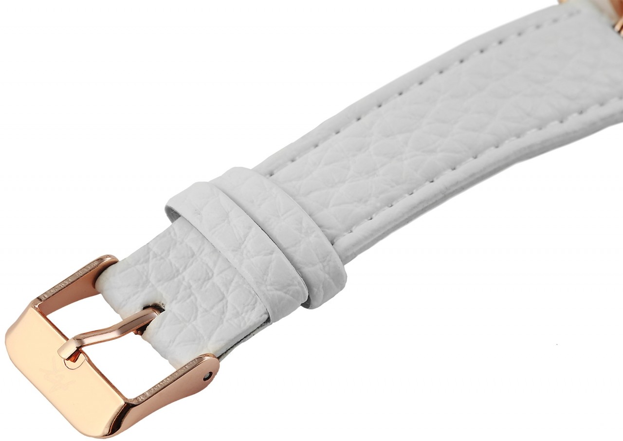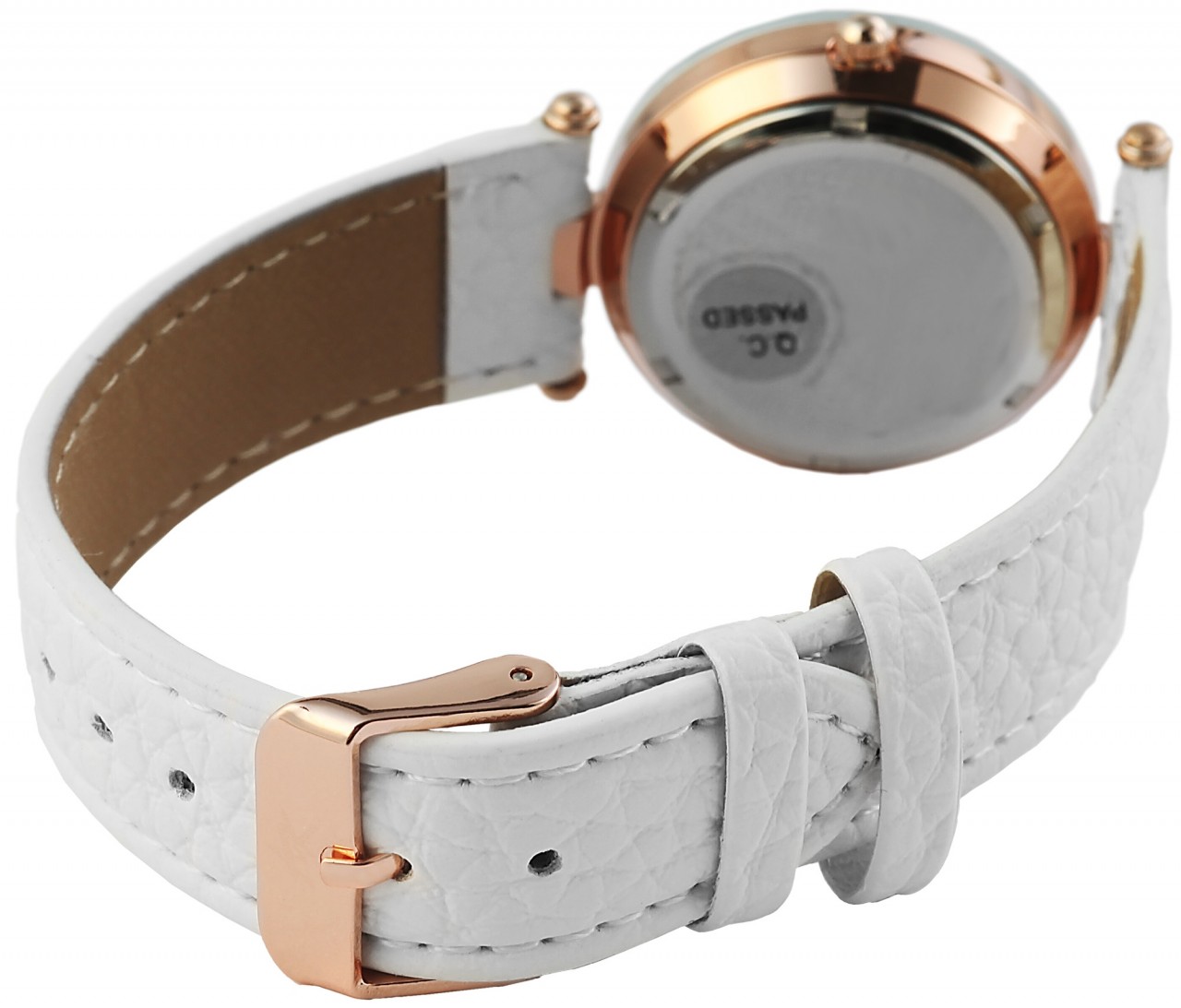 O relógio analógico feminino da marca Praktik possui movimento de quartzo de alta qualidade. A pulseira em imitação de couro tem 18 mm de largura e abre com uma fivela. O comprimento total é de 21 cm. A caixa de metal com vidro mineral tem dimensão de 30 mm e altura de caixa de 10 mm. A tampa da caixa é feita de aço inoxidável. O acabamento em cristal no mostrador também é um destaque visual.