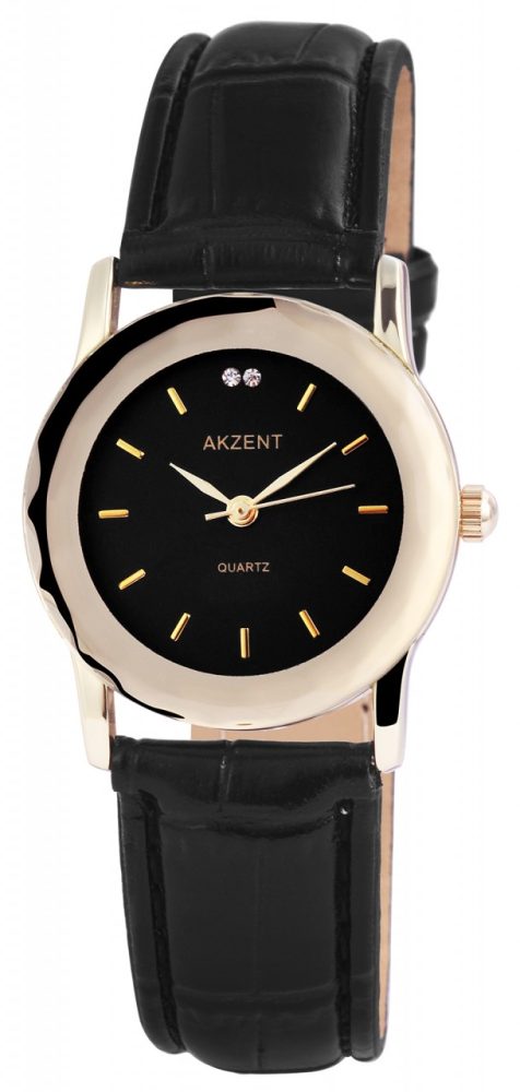 O relógio analógico Akzent para senhora possui um movimento de quartzo de alta qualidade. A bracelete em imitação de pele tem 18 mm de largura e abre-se com uma fivela de pino. O comprimento total é de 21 cm. A caixa metálica com vidro mineral mede 30 mm e tem 7 mm de altura. A tampa da caixa é feita de aço inoxidável. O friso de cristal no mostrador é também um destaque visual. O relógio é testado a uma pressão de 3 ATM.
