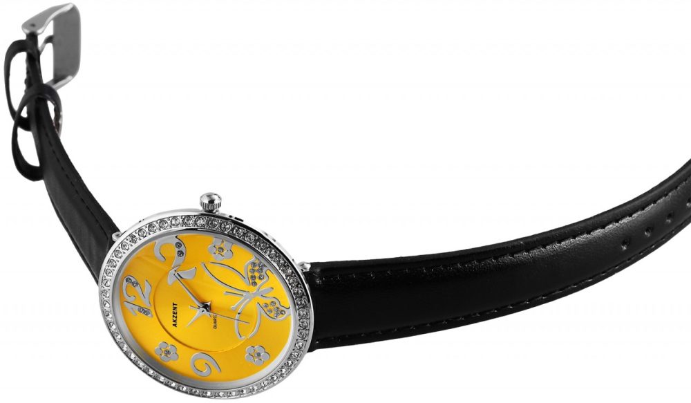 O relógio analógico Akzent para senhora possui um movimento de quartzo de alta qualidade. A bracelete em imitação de pele tem 18 mm de largura e abre-se com uma fivela de pino. O comprimento total é de 25 cm. A caixa metálica com vidro mineral mede 40 mm e tem 9 mm de altura. A caixa é realçada com um acabamento em cristal. A tampa da caixa é de aço inoxidável. O friso de cristal no mostrador é também um destaque visual. O relógio é testado à pressão até 3 ATM.