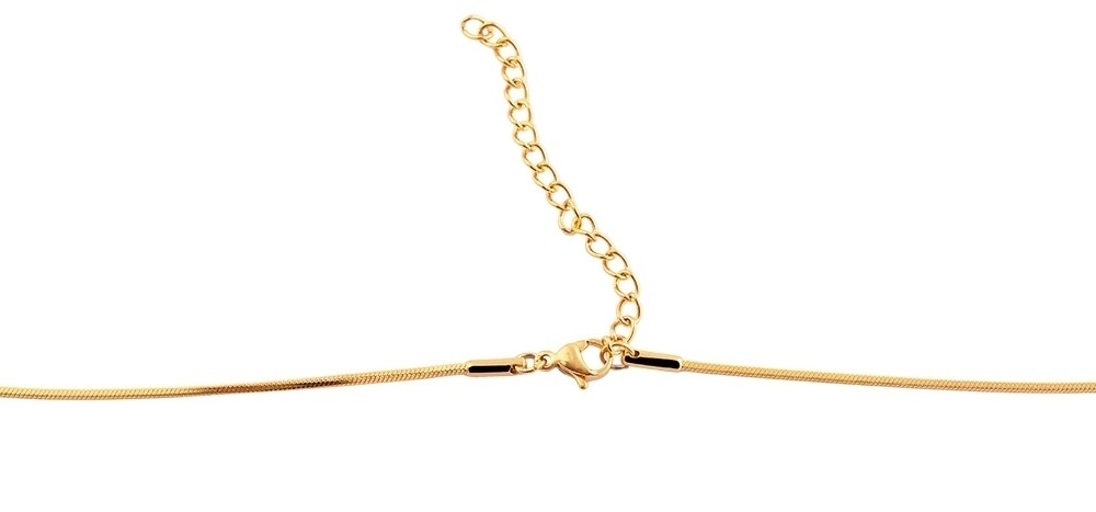 O colar dourado da marca Praktik é feito de aço inoxidável em padrão cobra e tem 50 cm de comprimento. A espessura do material é de 1 mm. Além disso, uma corrente de extensão de 5 cm de comprimento é presa a uma extremidade da corrente. Isso permite variar o comprimento em até 5 cm e adaptar a joia a qualquer look. A corrente de cobra simples pode ser aberta e fechada com um mosquetão dourado, que também é feito de aço inoxidável.