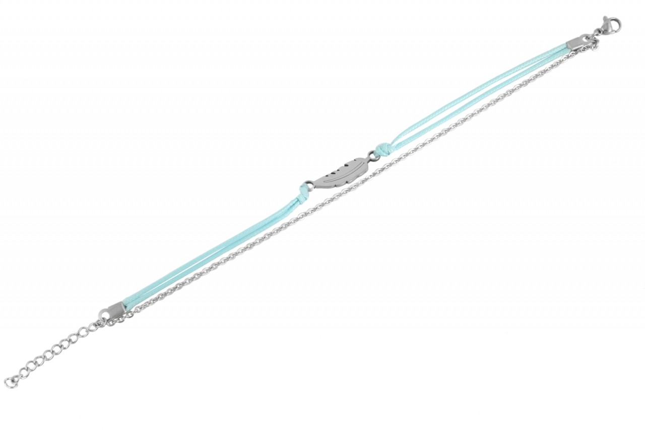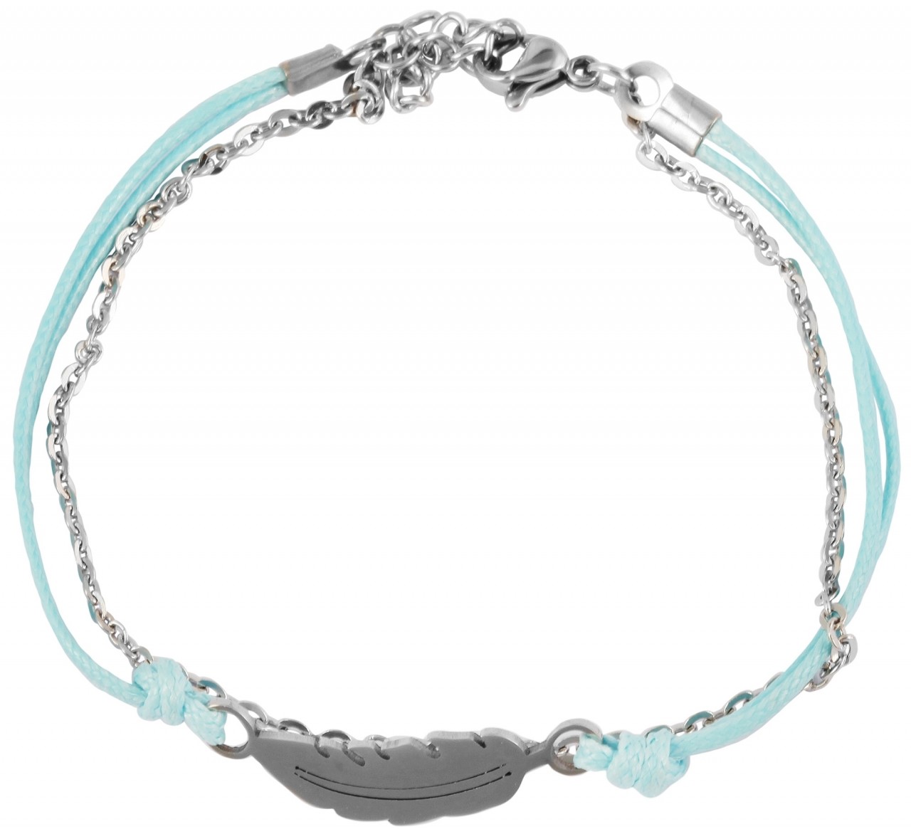 A pulseira de joias da marca Praktik é feita de uma pulseira de aço inoxidável prateado e uma pulseira de tecido de duas fileiras. A pulseira têxtil é decorada no centro com um elemento de aço inoxidável prateado em forma de pena. A pena confere à pulseira um visual especial e a torna uma ótima companheira do dia a dia que pode ser combinada com qualquer look. Pode ser aberto e fechado com um mosquetão prateado que pode ser fixado no ilhó final ou na corrente de extensão de 3 cm de comprimento. As dimensões resultam de um comprimento total de 20 cm incluindo a corrente extensora de 3 cm de comprimento, largura de 7 mm e altura de 2 mm.