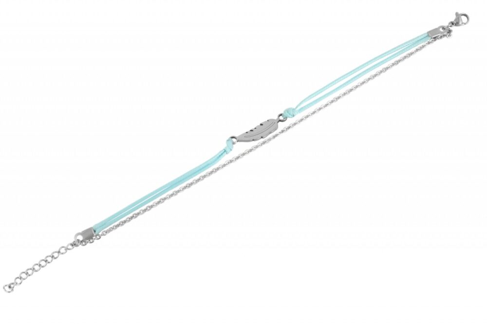 A pulseira de joias da marca Praktik é feita de uma pulseira de aço inoxidável prateado e uma pulseira de tecido de duas fileiras. A pulseira têxtil é decorada no centro com um elemento de aço inoxidável prateado em forma de pena. A pena confere à pulseira um visual especial e a torna uma ótima companheira do dia a dia que pode ser combinada com qualquer look. Pode ser aberto e fechado com um mosquetão prateado que pode ser fixado no ilhó final ou na corrente de extensão de 3 cm de comprimento. As dimensões resultam de um comprimento total de 20 cm incluindo a corrente extensora de 3 cm de comprimento, largura de 7 mm e altura de 2 mm.