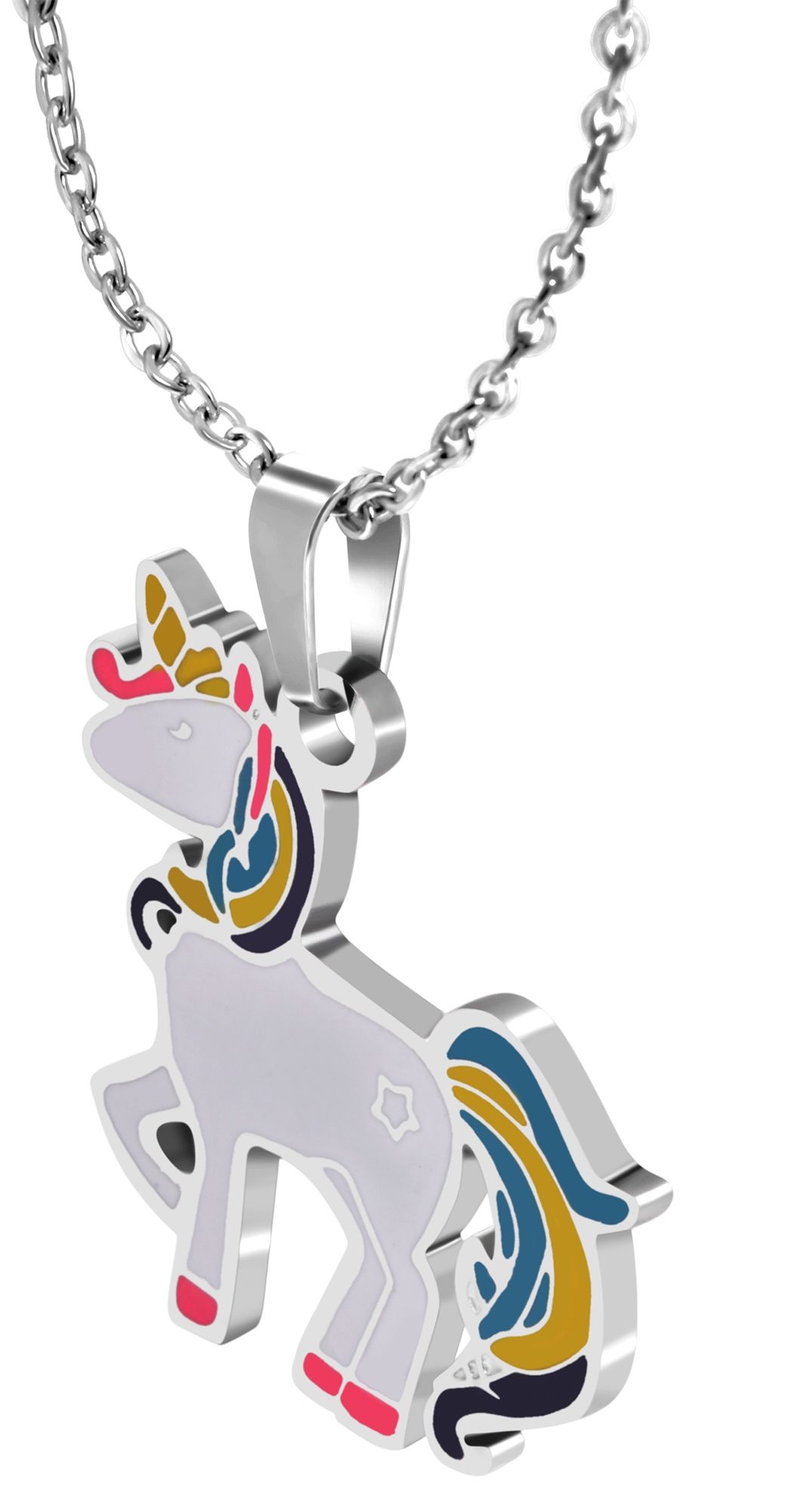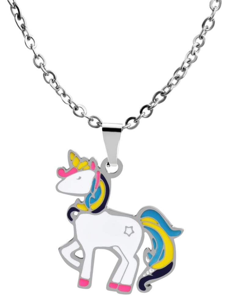 - O conjunto de jóias Akzent é composto por um par de brincos de pino e um colar com um pendente a condizer – carinhosamente concebidos na forma de um unicórnio colorido.