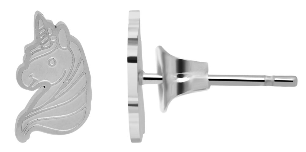 - O pingente do colar e os brincos são feitos na forma de uma cabeça de unicórnio.