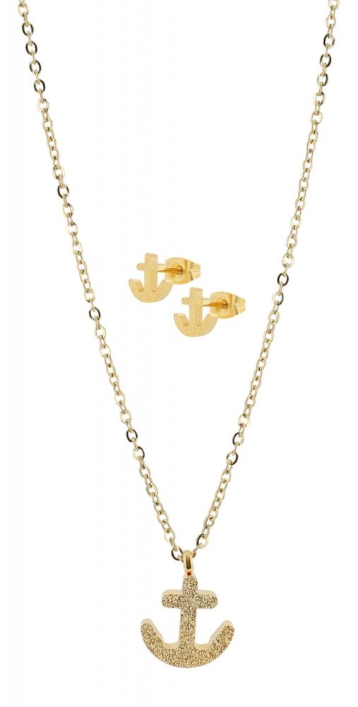 Este conjunto marítimo em aço inoxidável de alta qualidade apresenta uma combinação harmoniosa de motivos de âncora, composto por um colar com pendente e brincos a condizer. Feito em aço inoxidável, o conjunto de joias impressiona pela durabilidade, facilidade de cuidado e propriedades hipoalergênicas, tornando-o ideal para o uso diário. A natureza leve do material garante que seja confortável de usar e tenha qualidade duradoura. A superfície jateada confere ao conjunto de joias uma aparência texturizada e fosca, o que contribui para a estética atraente da joia. A corrente de 45 cm de comprimento fecha de forma segura com um mosquetão e decora o decote com um pingente…