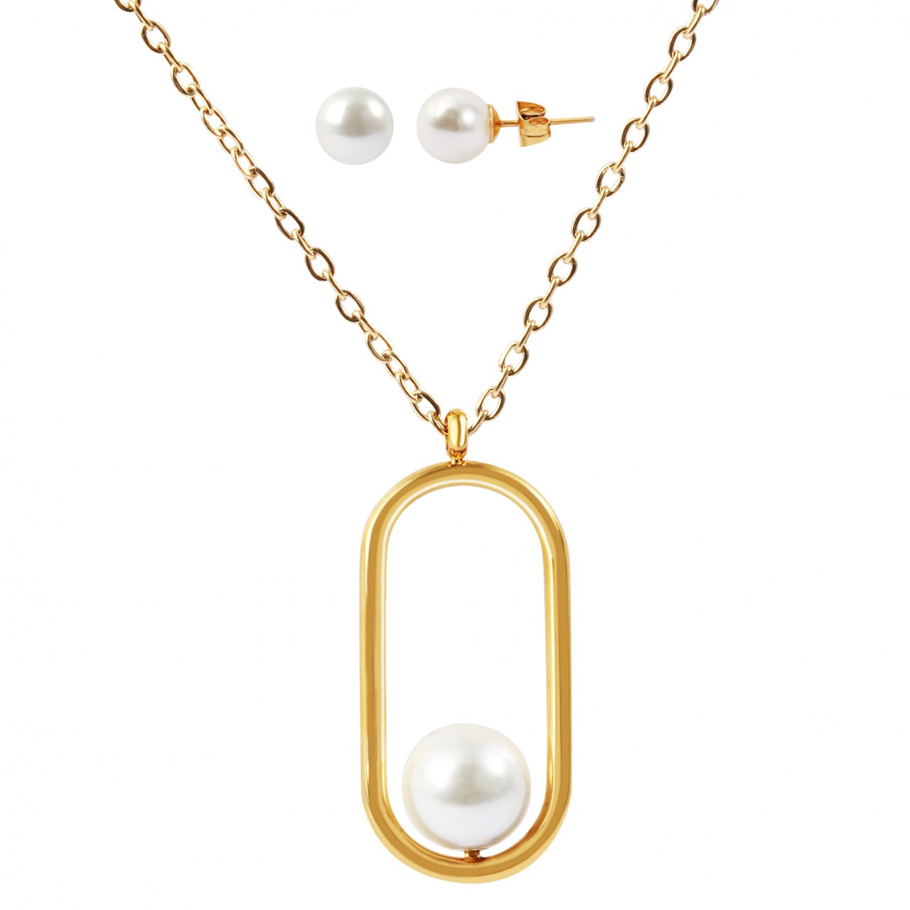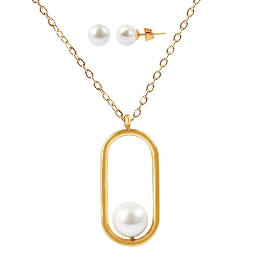 O conjunto de joias da marca Praktik, composto por um par de brincos e um colar, é feito em aço inoxidável. O material revela-se particularmente robusto, durável e amigo da pele. As peças de joalheria são coordenadas entre si em termos de cor e design e podem ser usadas perfeitamente em combinação. Os brincos com acabamento em pérolas artificiais têm diâmetro de 8 mm e espessura de 8,5 mm. Os brincos podem ser presos ao orifício da orelha com um parafuso borboleta. A porca de conforto incluída com placa de silicone fornece suporte adicional. O colar correspondente foi feito no padrão âncora e tem 45 cm de comprimento. É fechado com um mosquetão clássico, que impede que abra sozinho. Uma corrente de extensão de 5 cm de comprimento é presa a uma extremidade da corrente.