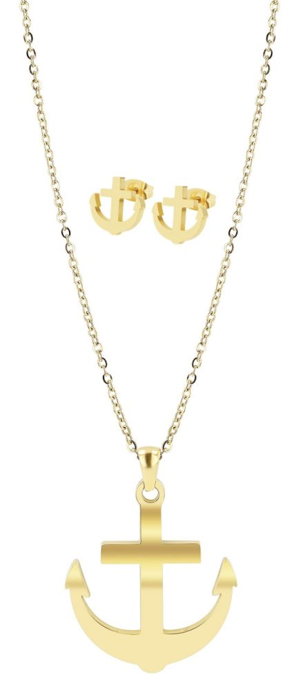 Este conjunto marítimo em aço inoxidável de alta qualidade apresenta uma combinação harmoniosa de motivos de âncora, composto por um colar com pendente e brincos a condizer. Feito em aço inoxidável, o conjunto de joias impressiona pela durabilidade, facilidade de cuidado e propriedades hipoalergênicas, tornando-o ideal para o uso diário. A natureza leve do material garante que seja confortável de usar e tenha qualidade duradoura. A corrente de 45 cm de comprimento fecha de forma segura com um mosquetão e decora o decote com um pingente em forma de âncora. O pingente tem um tamanho de 34 x 30 x 2 mm. Os brincos correspondentes medem…