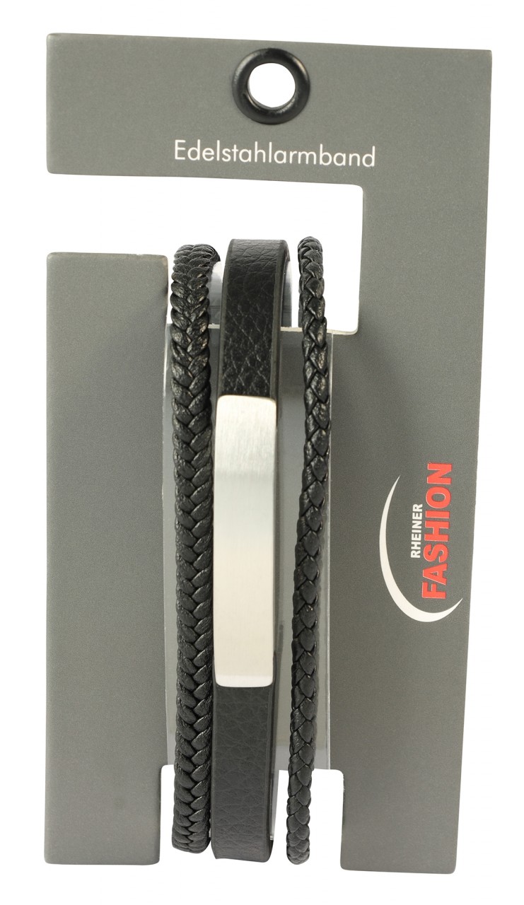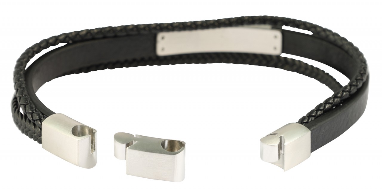 “Silvano” é um acessório estiloso para o homem moderno. Três fios de pele sintética em diferentes larguras e designs de superfície combinados para formar uma pulseira. Os elementos em aço inoxidável adaptam-se perfeitamente ao look masculino. Esta pulseira é única e pessoal com iniciais pessoais, nomes ou uma pequena mensagem. A pulseira “Silvano” é um presente ideal para ocasiões especiais. Tamanhos disponíveis: 19 cm e 21 cm.